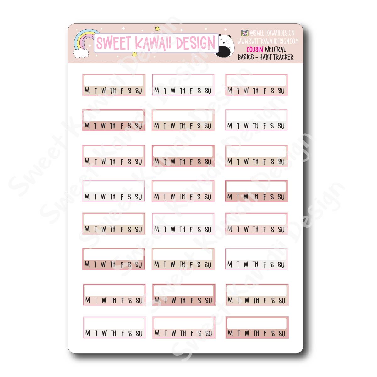 Habit tracker, quarter box, date cover, half box - 1.31" wide