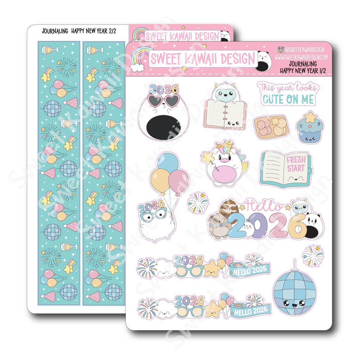 Ring in the new year with a burst of pastel confetti and kawaii cheer! ✨ This festive kit is packed with party hats, bubbly drinks, fireworks, and your favorite critters celebrating the start of something bright and new. Perfect for decorating your planner as you dream big, set goals, and start 2026 in the cutest way possible!