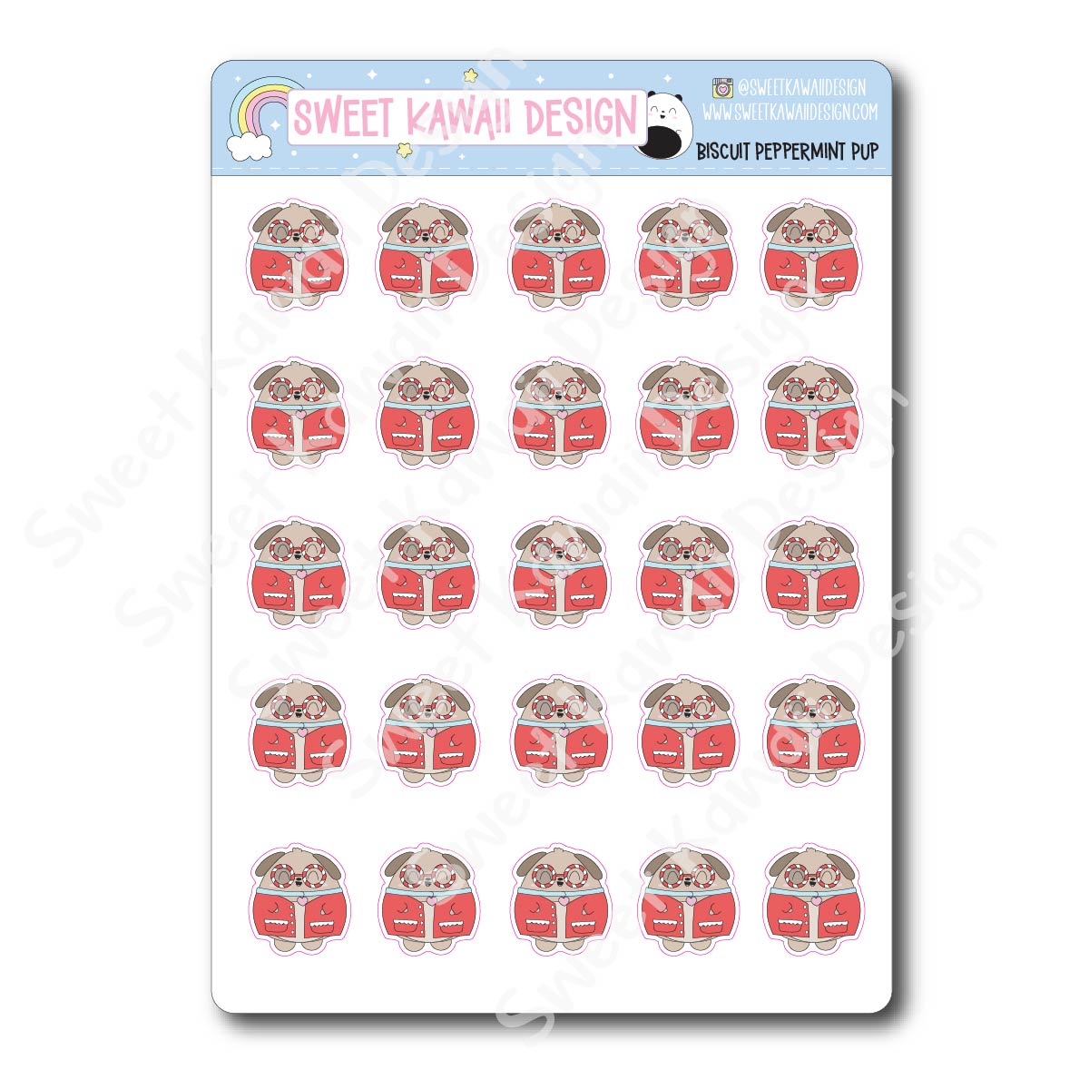 Biscuit is bringing the holiday cheer in his cozy red cardigan and peppermint-rimmed glasses! This sweet sticker is perfect for adding a festive (and totally adorable) touch to your planner, journal, or stationery. A must-have for any Peppermint Dreams fan!