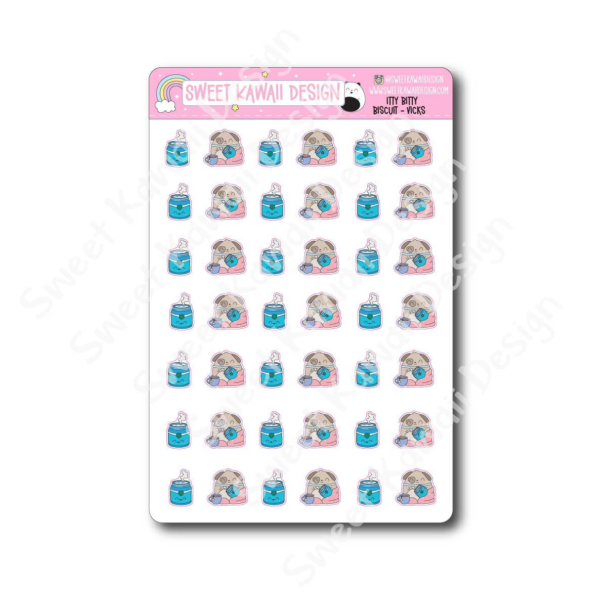Biscuit is here with a tub of Vicks and a mission to feel better. đź’š This sticker sheet is perfect for sick days, recovery weeks, and documenting those stay-in-bed kind of moments.