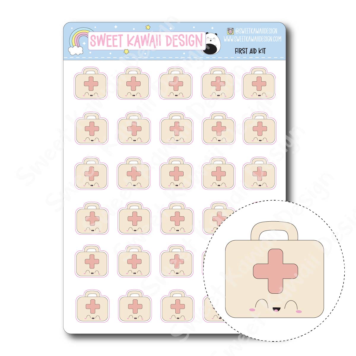 A cheerful first aid kit sticker, perfect for documenting sick days, self-care moments, and days that call for a little extra care.