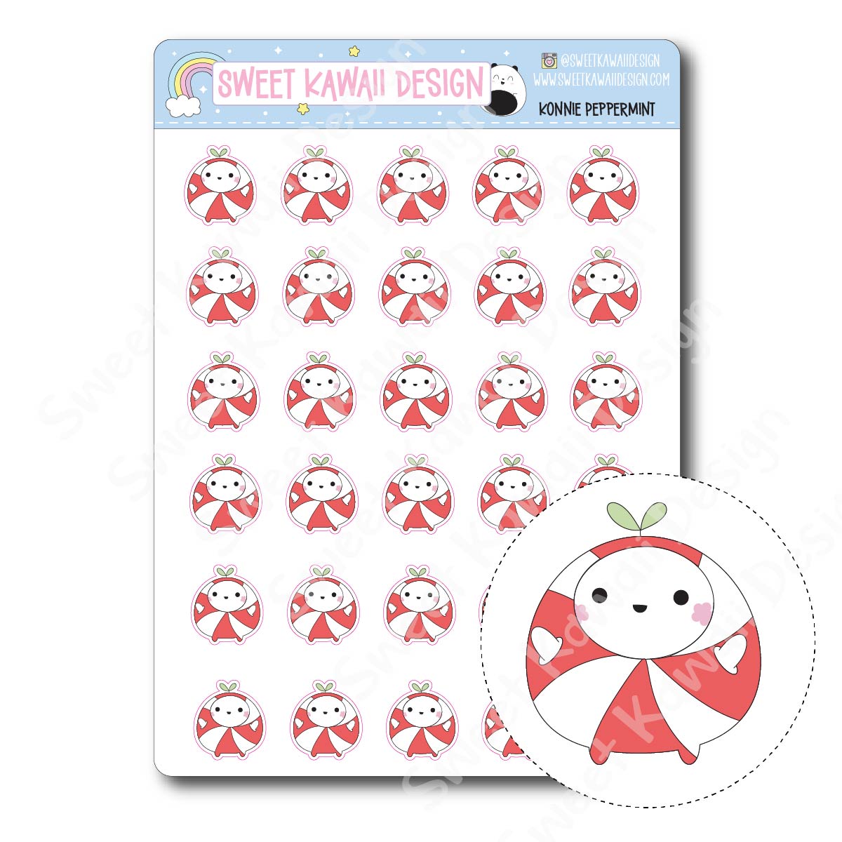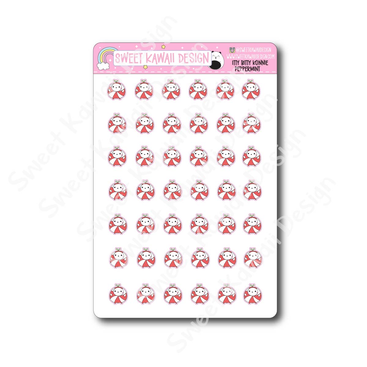 Konnie is all dressed up like the sweetest peppermint around! Wrapped in festive red and white stripes with plenty of kawaii charm, this sheet is perfect for adding a pop of holiday cheer to your planner or journaling pages. A must-have for fans of the Peppermint Dreams collection!