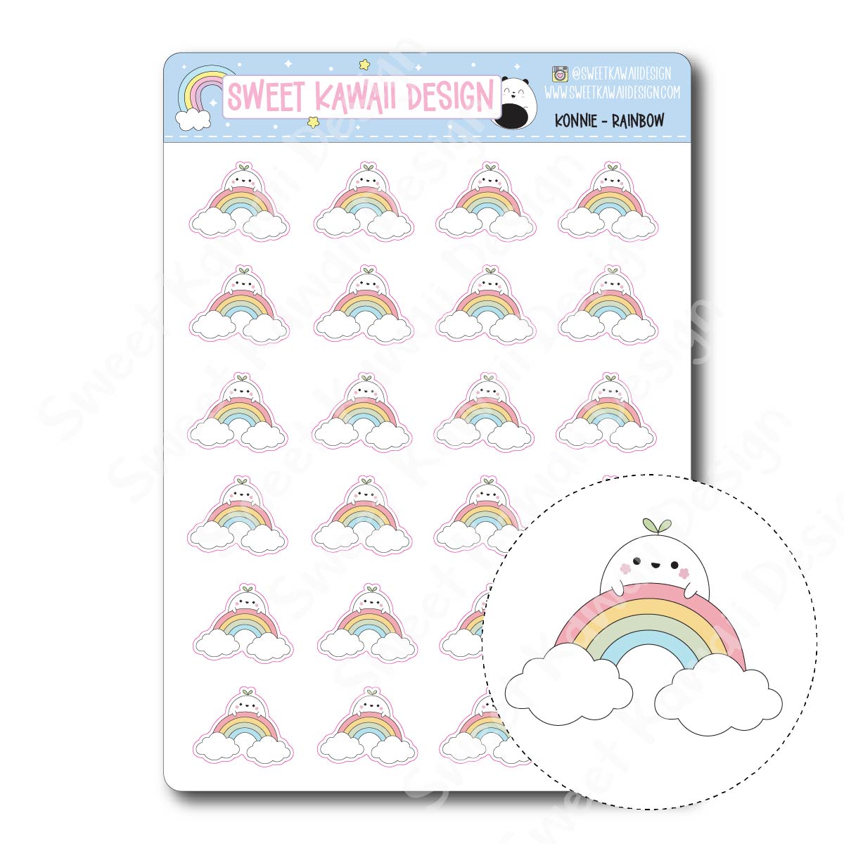 Konnie pops out from behind a rainbow, bringing a little brightness to your planner. Perfect for marking better days, small wins, and moments of hope.