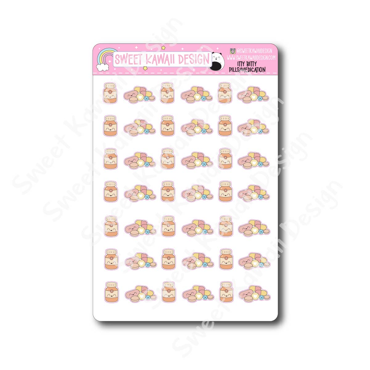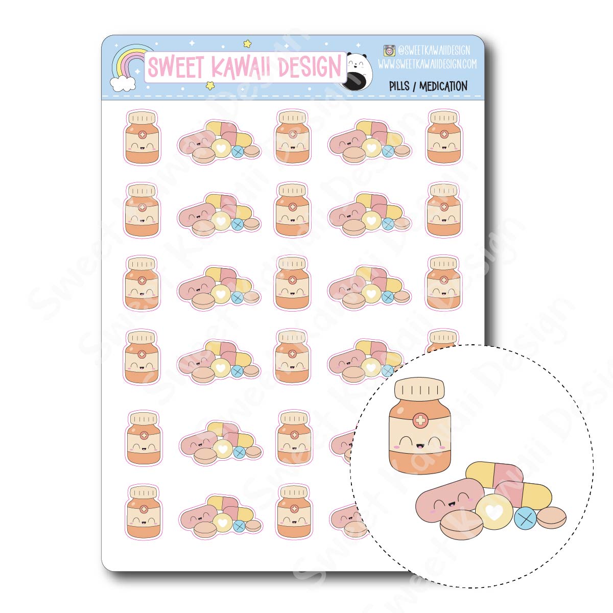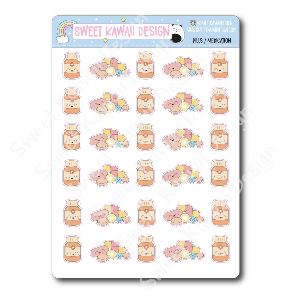 This sticker sheet features a pile of pills and a pill bottle, perfect for tracking medications, sick days, and recovery time in your planner.