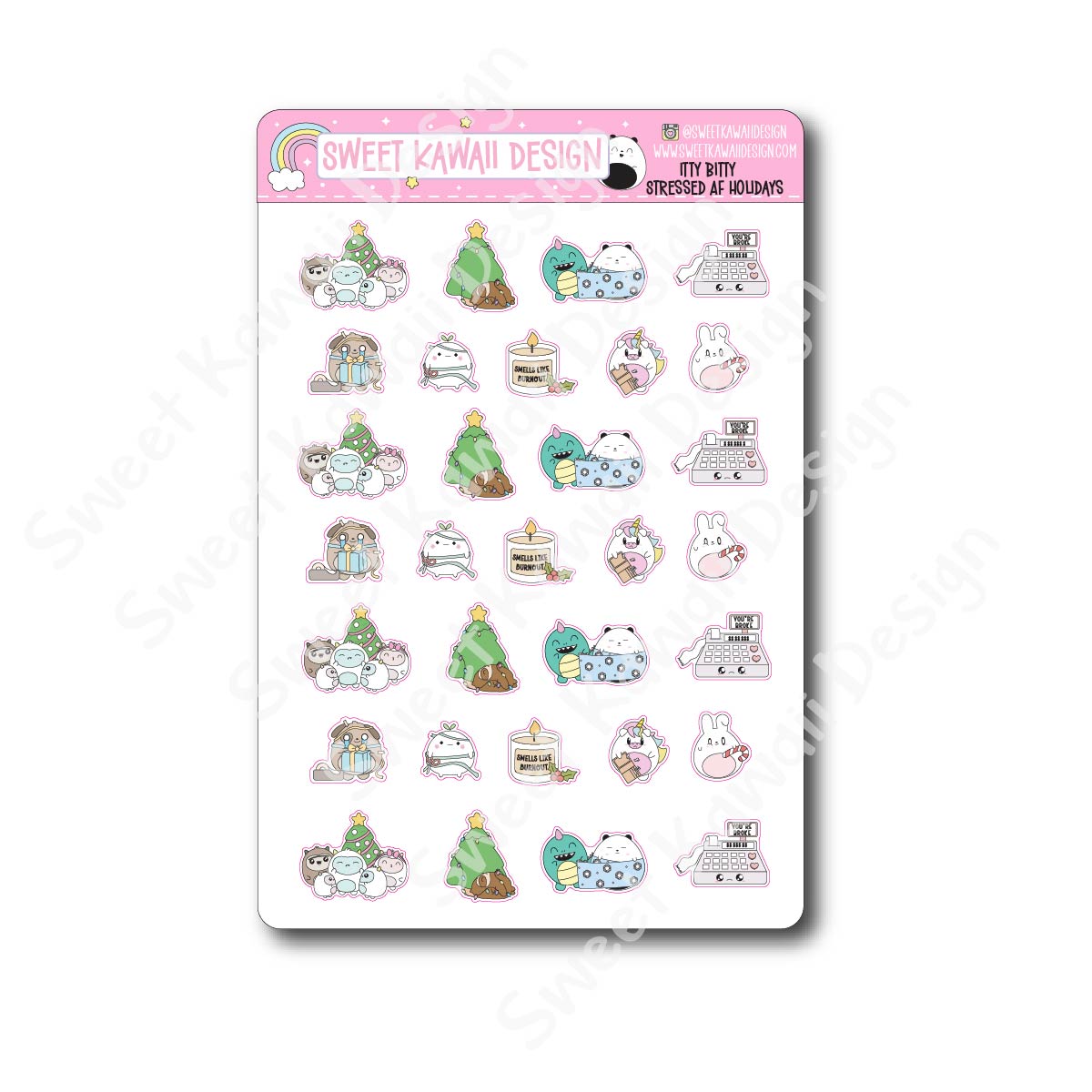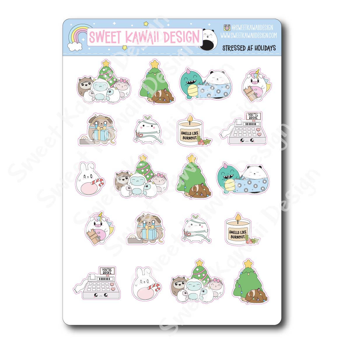 Perfect for adding a dash of humor to your spreads, marking stressful moments, or simply keeping it real while still keeping it cute. This sheet brings all the pastel, kawaii charm with a very relatable holiday twist.