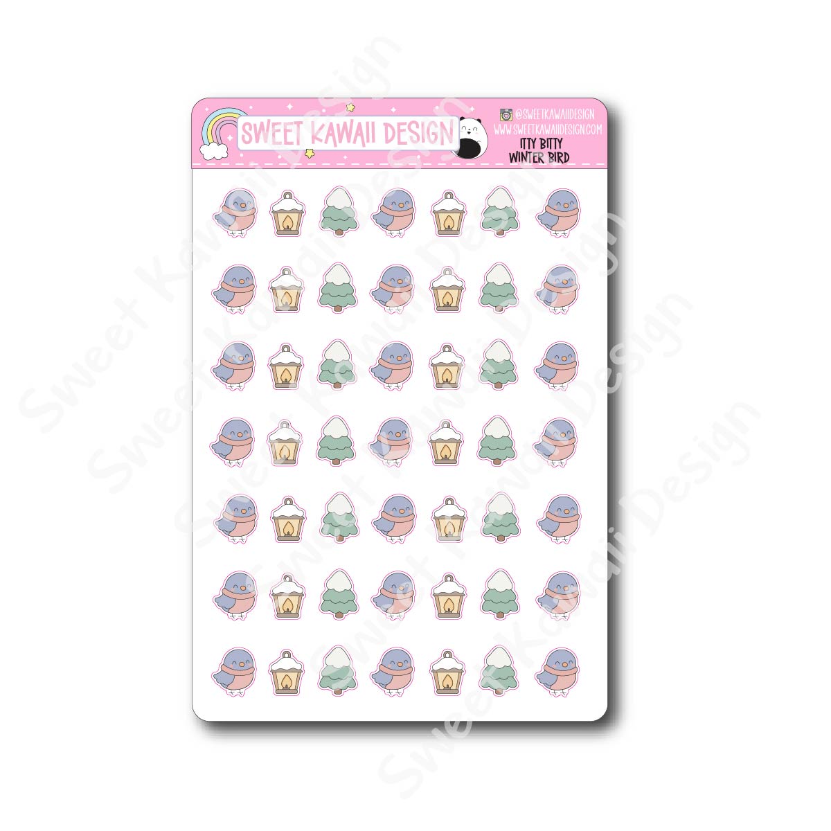 This cozy sticker sheet features sweet winter details including a chilly little bird, a snow-covered tree, and a softly glowing lantern. Perfect for adding calm, peaceful winter vibes to your planner, journal, or memory spreads. A simple, cozy touch for snowy days and quiet moments.