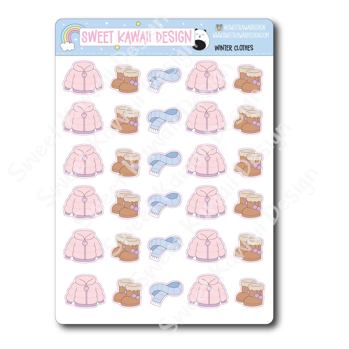 Bundle up in style! This sticker sheet features cozy winter essentials including a jacket, boots, and a scarf—perfect for marking chilly days, winter outings, or cozy seasonal plans in your planner. Cute, practical, and full of cold-weather charm.