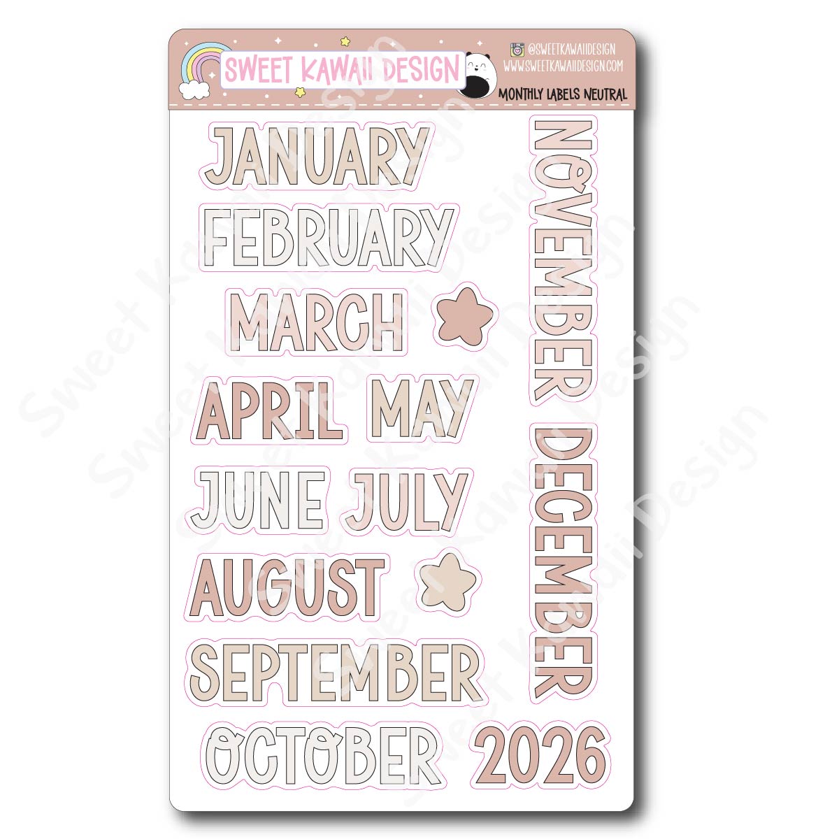 The height of each word varies slightly but on average the regular stand at .82" tall, small stand at approx .55" tall. These are great for labeling your monthly overviews and other monthly themed layouts!