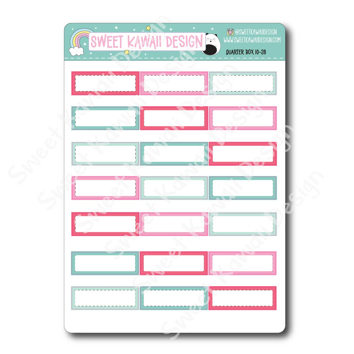 These stickers are modeled after our vertical kits. Full boxes stand at 1.9" tall. Quarter, Half and Full boxes are 1.5" wide.