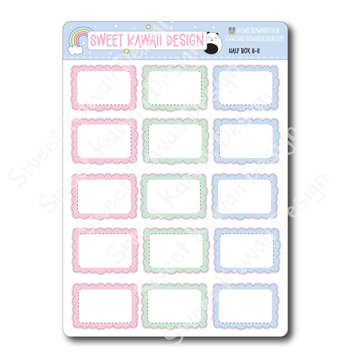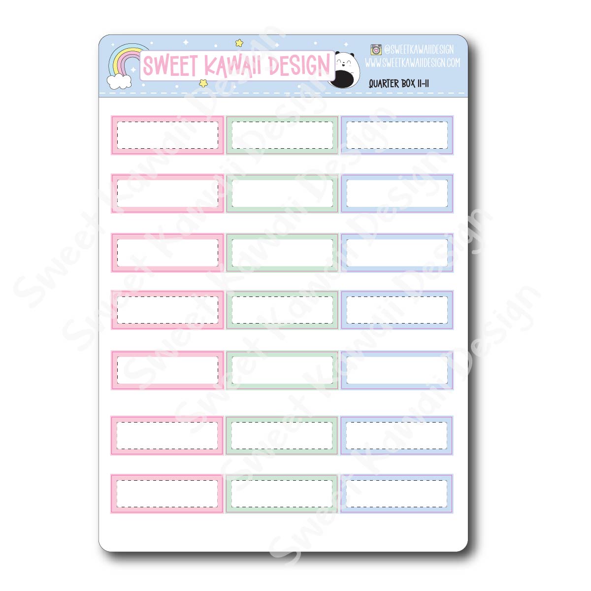 These stickers are modeled after our vertical kits. Full boxes stand at 1.9" tall. Quarter, Half and Full boxes are 1.5" wide.
