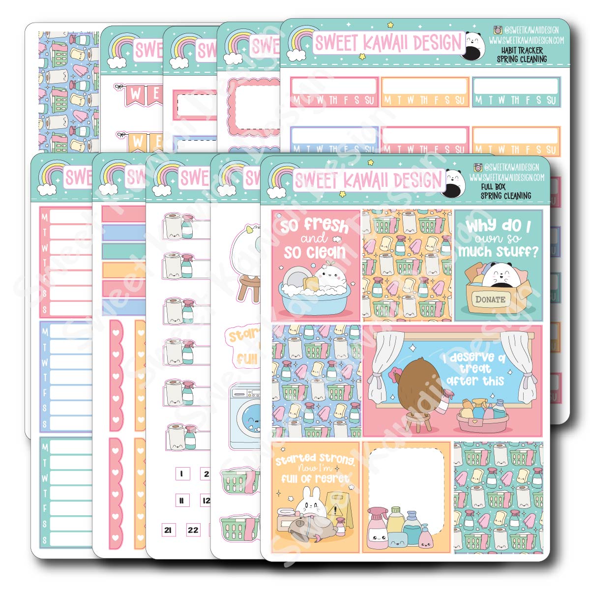 Kawaii Spring Cleaning Die Diecut Sticker Set