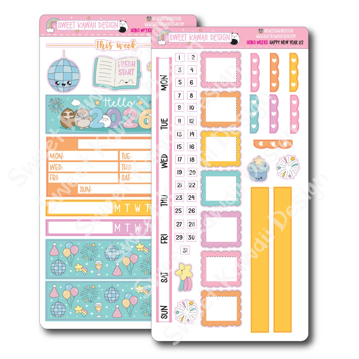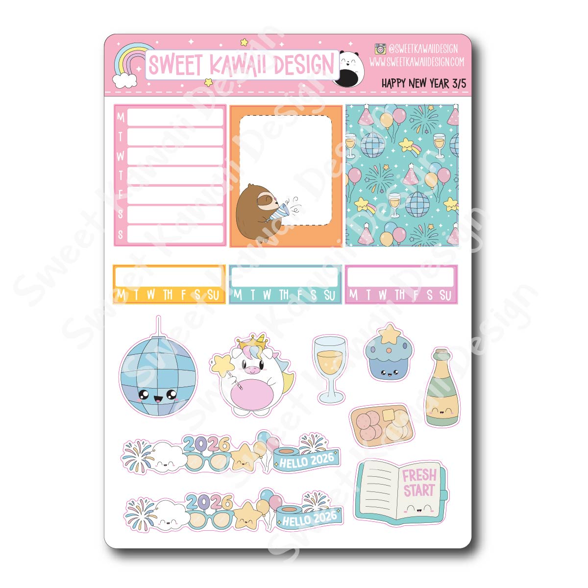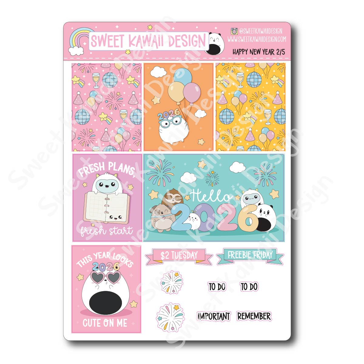 Ring in the new year with a burst of pastel confetti and kawaii cheer! ✨ This festive kit is packed with party hats, bubbly drinks, fireworks, and your favorite critters celebrating the start of something bright and new. Perfect for decorating your planner as you dream big, set goals, and start 2026 in the cutest way possible!