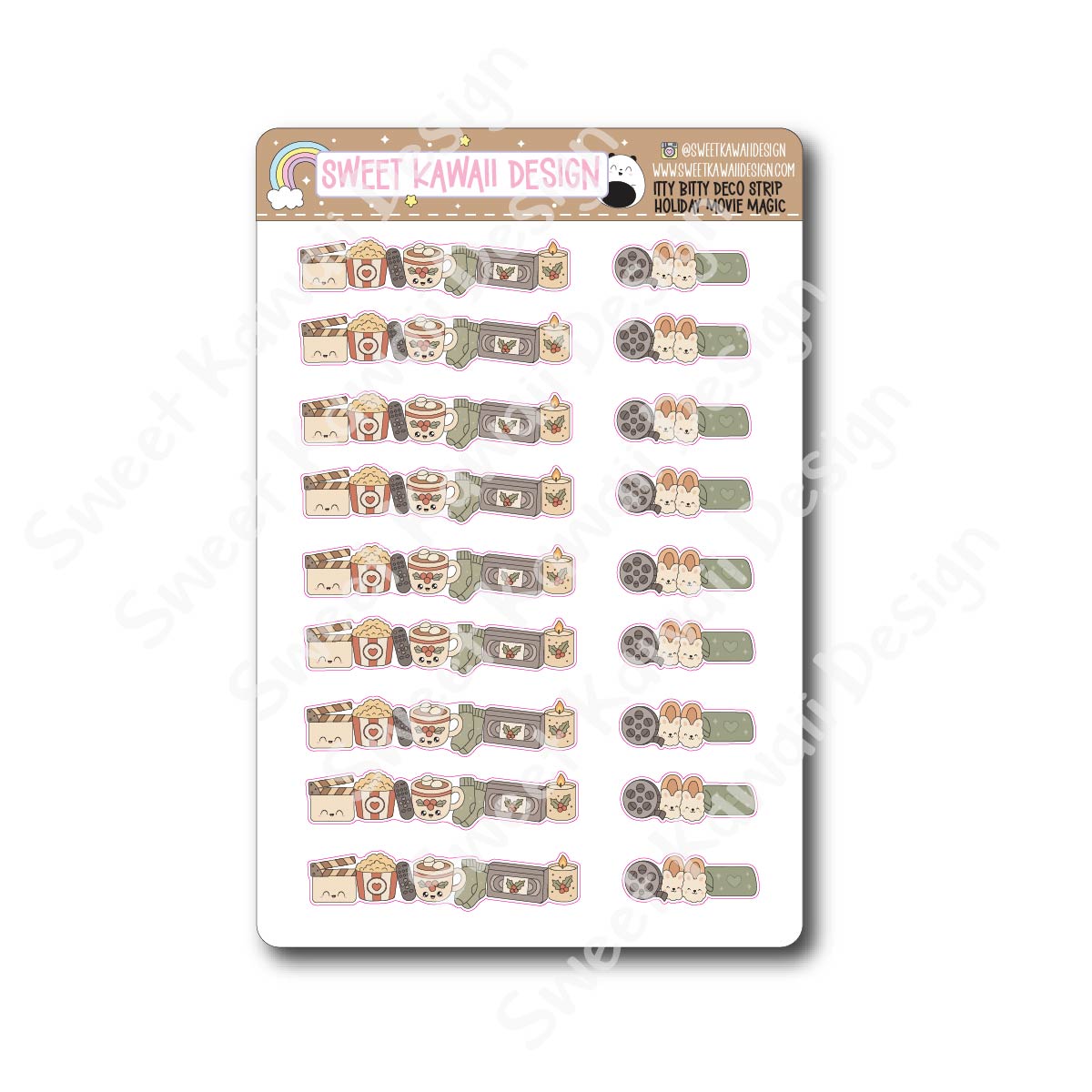 Kawaii Deco Strip Stickers (washi strip/border) - Holiday Movie Magic