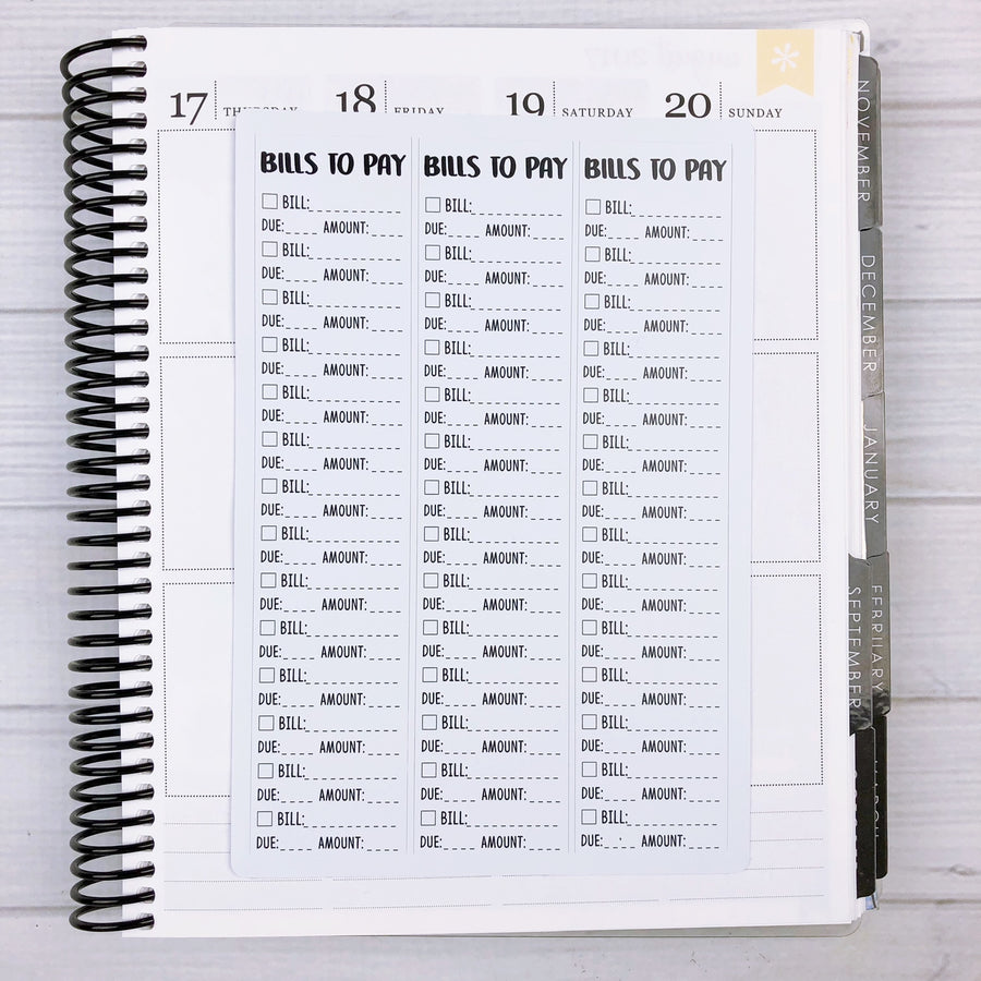 Stay on top of all your bills with these cute little reminders! They fit perfect in your Erin Condren planner or anywhere else you may need a little reminder. PLEASE NOTE THESE ARE LONG LISTS and not individually cut boxes, although if you wanted to you could cut them. :) Sticker is 1.5 x 6.88"