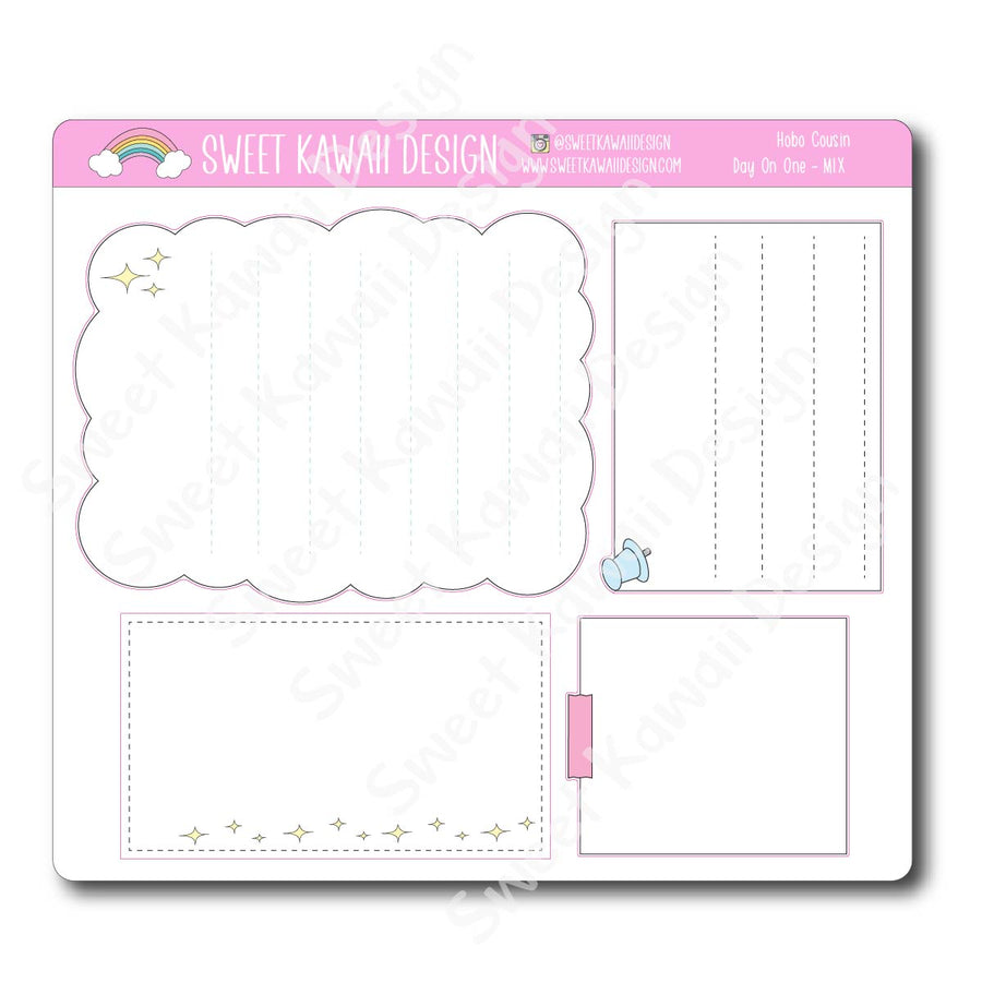 These fun full boxes were designed for "day on one page" layout featured in the Hobonichi Cousin but would work great anywhere you have a bit of space!