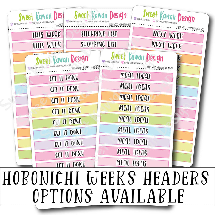 Ever at a loss for what to do with the right side of your Hobonichi weeks planner? These large headers will span the entire width of the ride side of your planner and make the perfect header for your list! :)