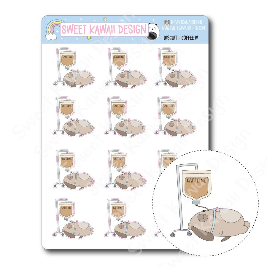 Biscuit has officially hit critical levels of tired — flat on the floor with a direct line of coffee straight to the mouth. ☕💉 This sticker sheet is made for those days when one cup isn’t enough and you’re operating on caffeine and chaos. Perfect for marking all-nighters, coffee-fueled survival, or when your planner needs a little extra espresso energy. Because sometimes, sipping just isn’t fast enough. 💤⚡