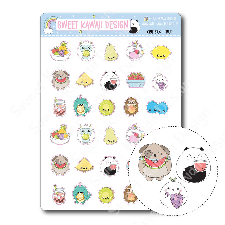 Kawaii Critter Stickers - Fruit