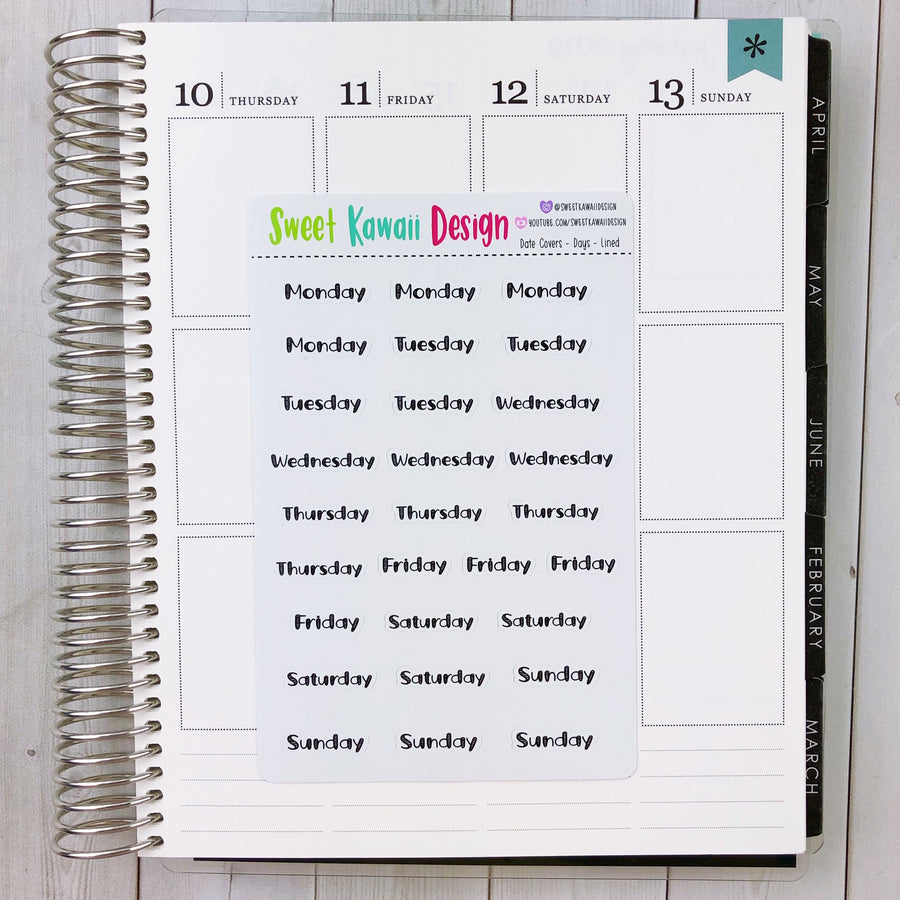Make your dates cuter with these fun day of the week stickers! Use them to cover up days in your planner or use them in your bullet journal!