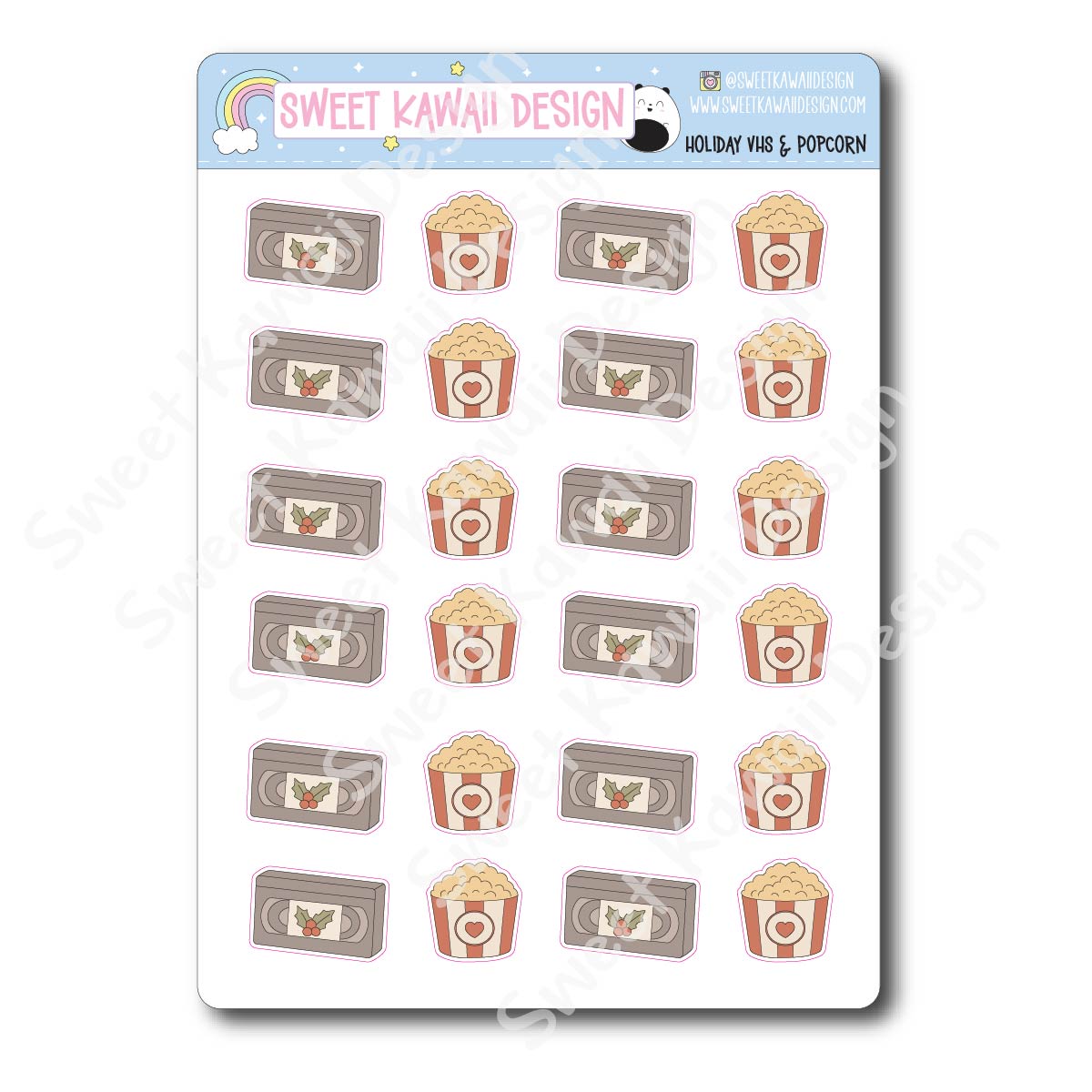 Bring on the nostalgia (and the snacks)! 🍿📼 This sheet features adorable VHS tapes and popcorn buckets — perfect for marking movie nights, binge sessions, or cozy evenings in your planner.