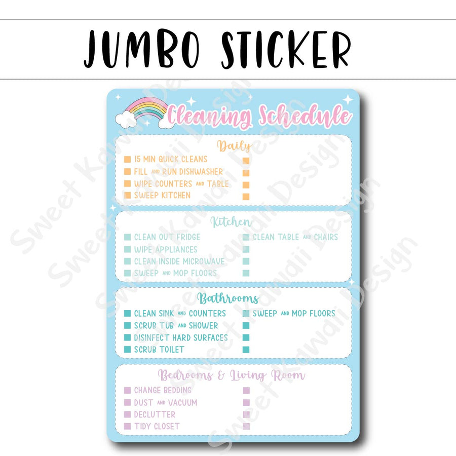 Kawaii Jumbo Sticker - 5x7 Cleaning Schedule (Rainbow)
