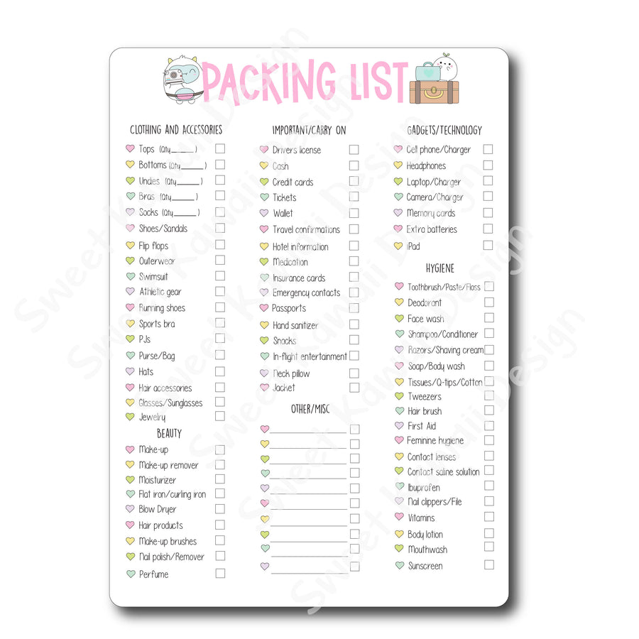 Kawaii Jumbo Sticker - Packing List (Filled) 5x7