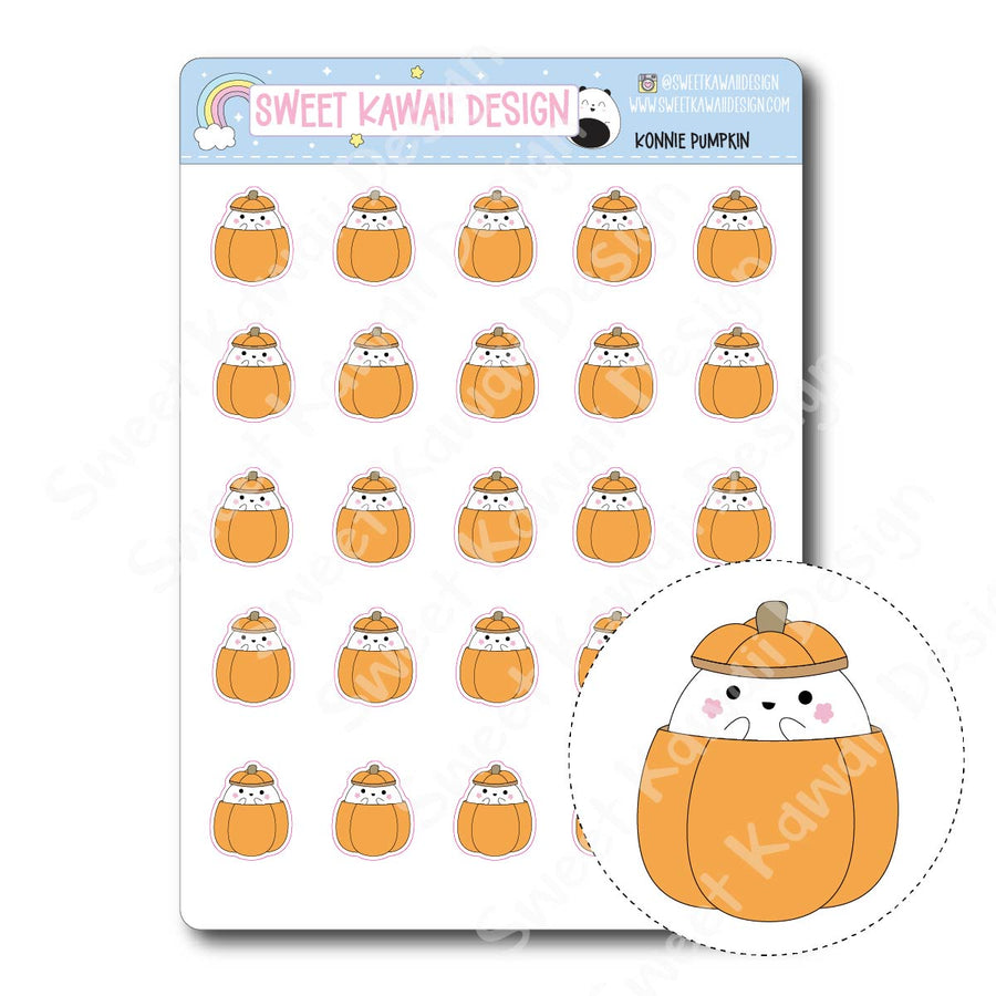 This sticker sheet features our favorite lil’ bat Konnie popping out of pumpkins, peeking from inside, and living her best autumn life. It’s the perfect way to add a dash of seasonal sass and cuteness to your planner or journal.