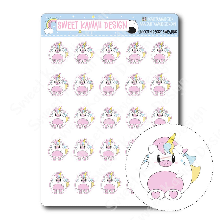 Even unicorns can’t handle the heat! This sticker sheet features Peggy in full meltdown mode—sparkles, sweat, and sass all included. She’s still magical… just very overheated.