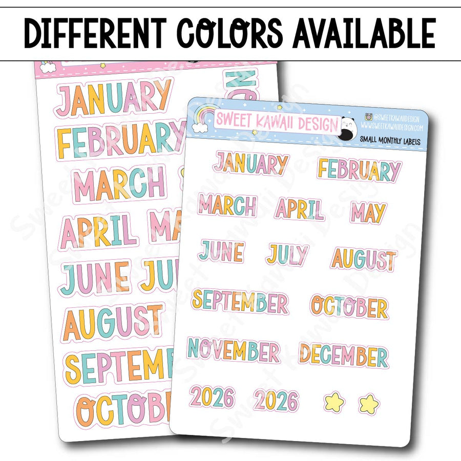 The height of each word varies slightly but on average the regular stand at .82" tall, small stand at approx .55" tall. These are great for labeling your monthly overviews and other monthly themed layouts!
