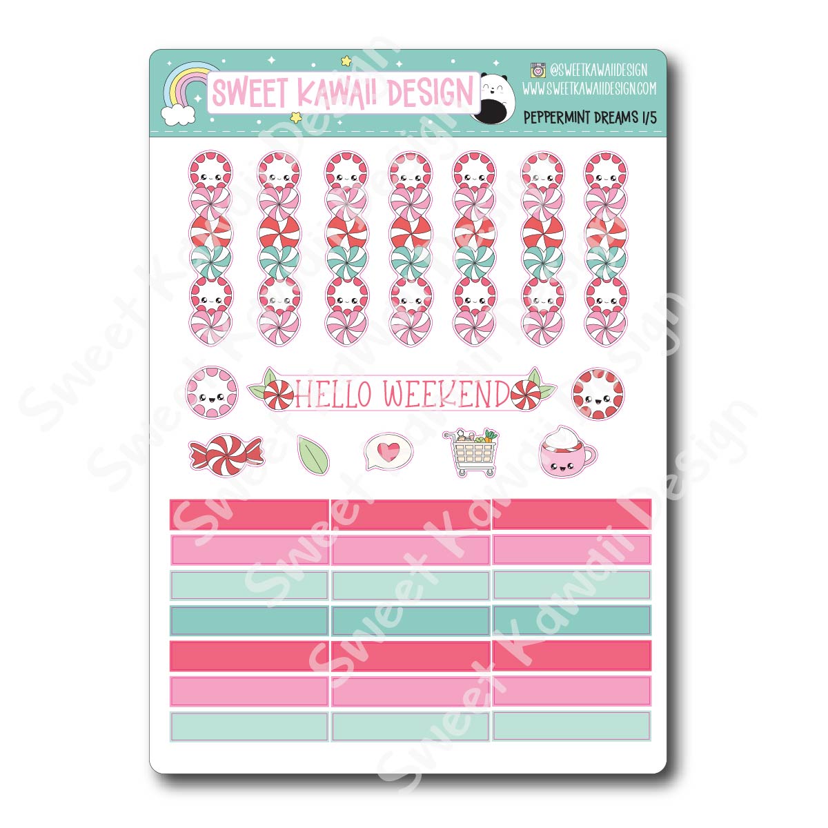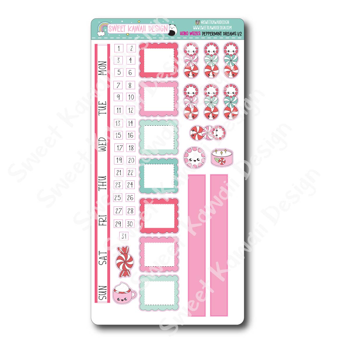 Step into a winter wonderland with our Peppermint Dreams kit! This collection is filled with sweet holiday vibes — think cozy mugs of cocoa, candy canes, frosted cookies, and all things peppermint-cute! Perfect for decking out your planner with cheerful pastel reds, soft mints, and a touch of sparkle.