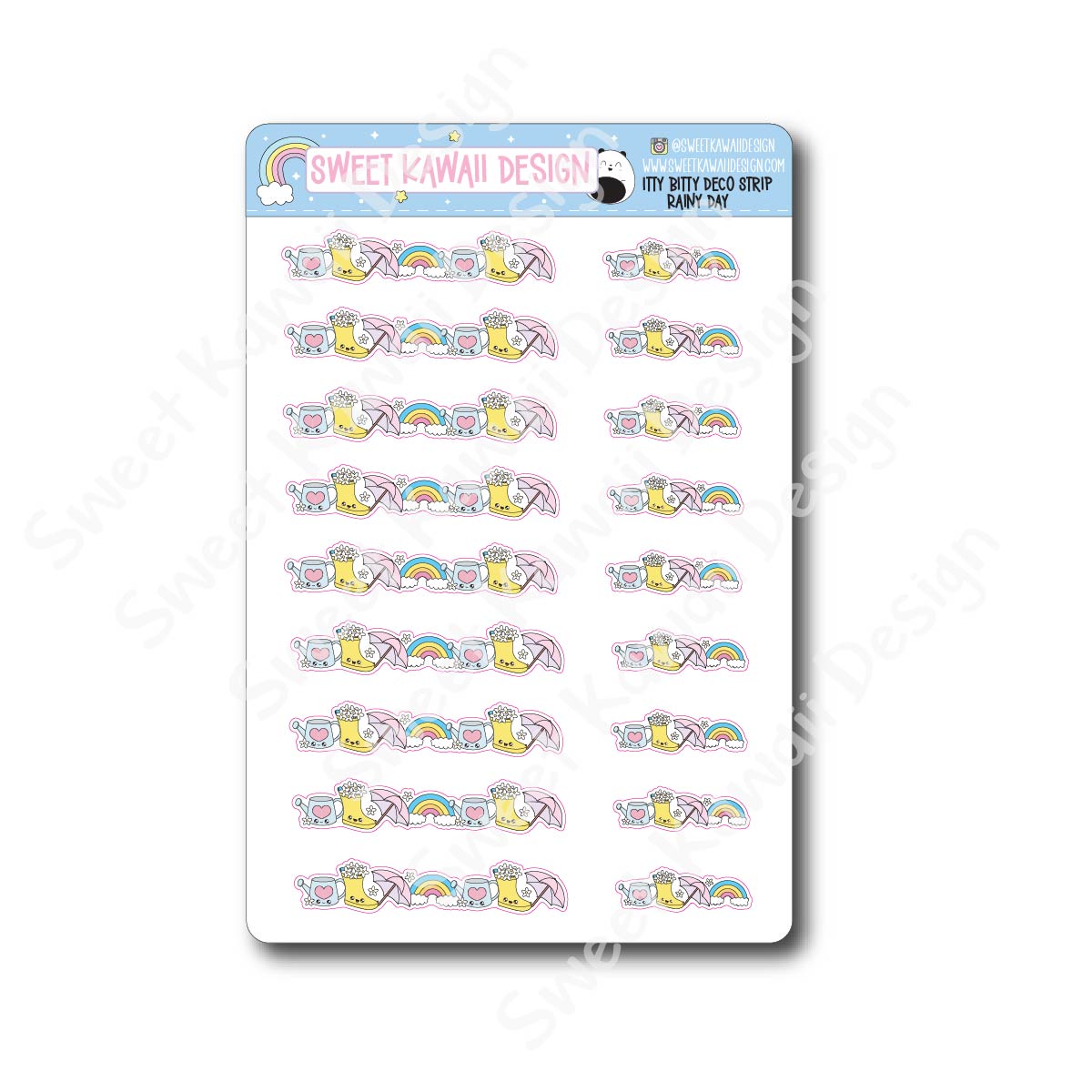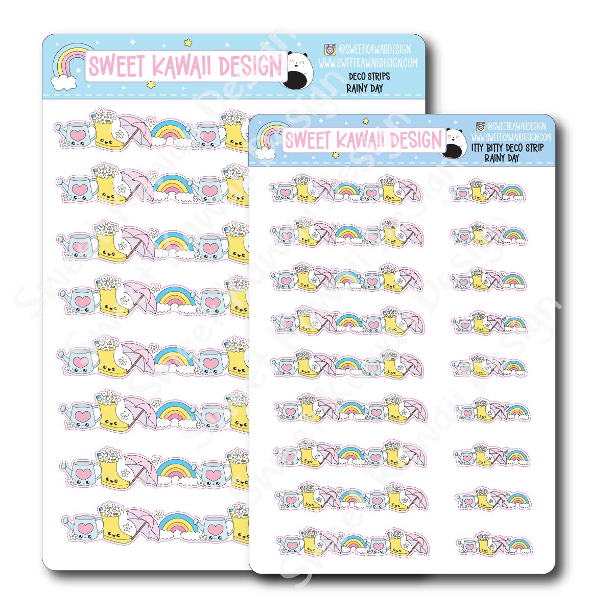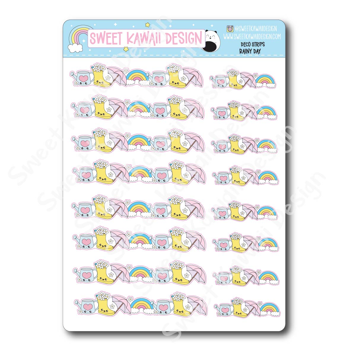 Kawaii Deco Strip Stickers (washi strip/border) - Rainy Days