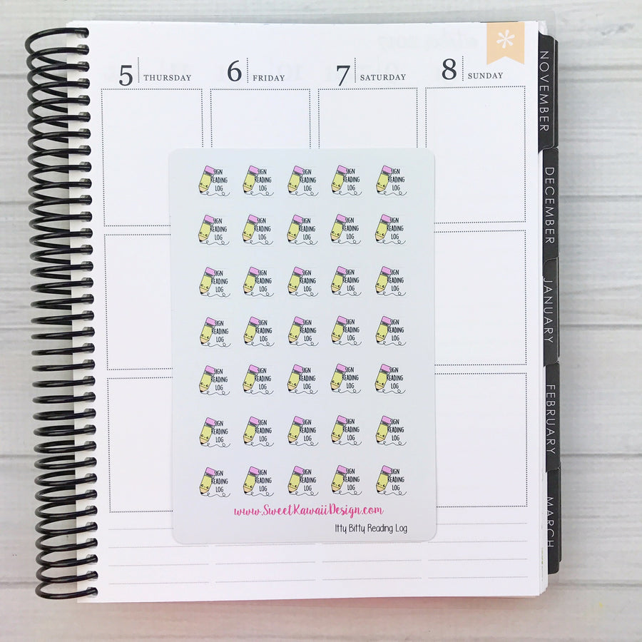 Itty Bitty Kawaii Sign Reading Log Stickers
