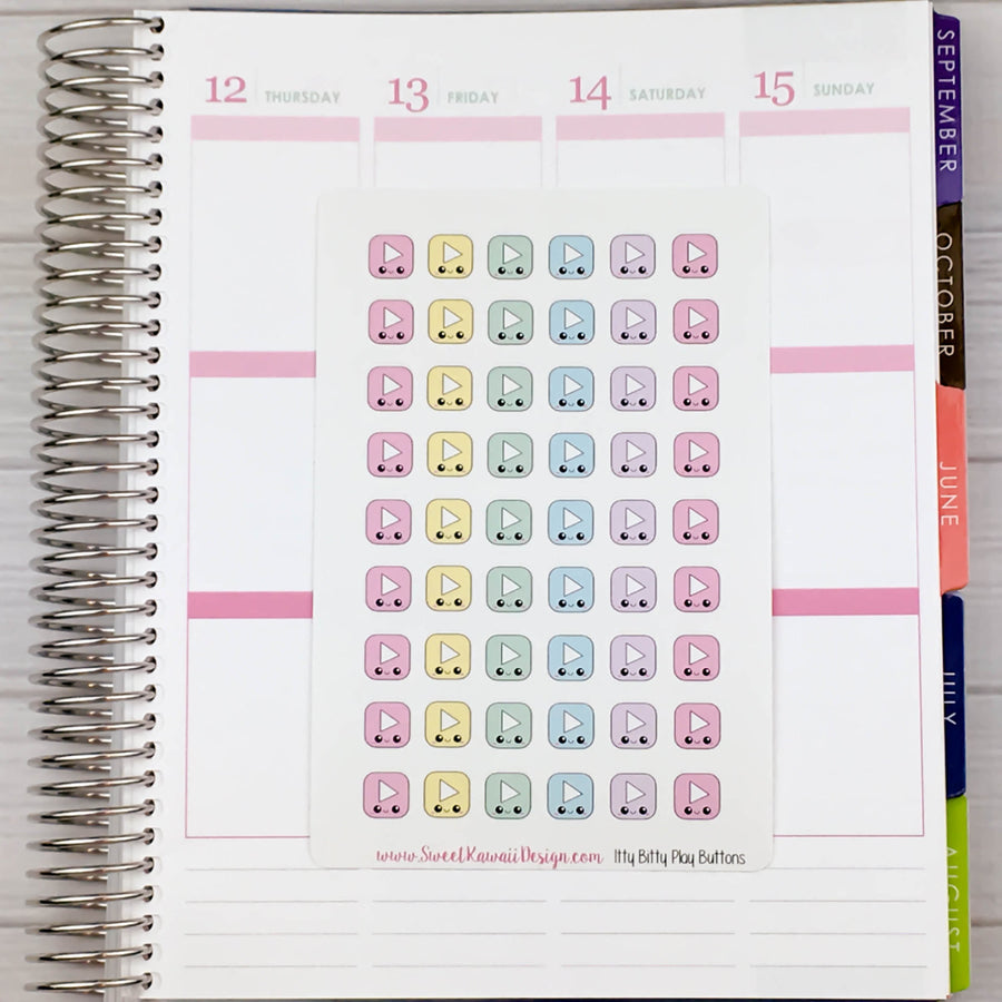 Itty Bitty Kawaii Video Play Button Stickers - Pastel