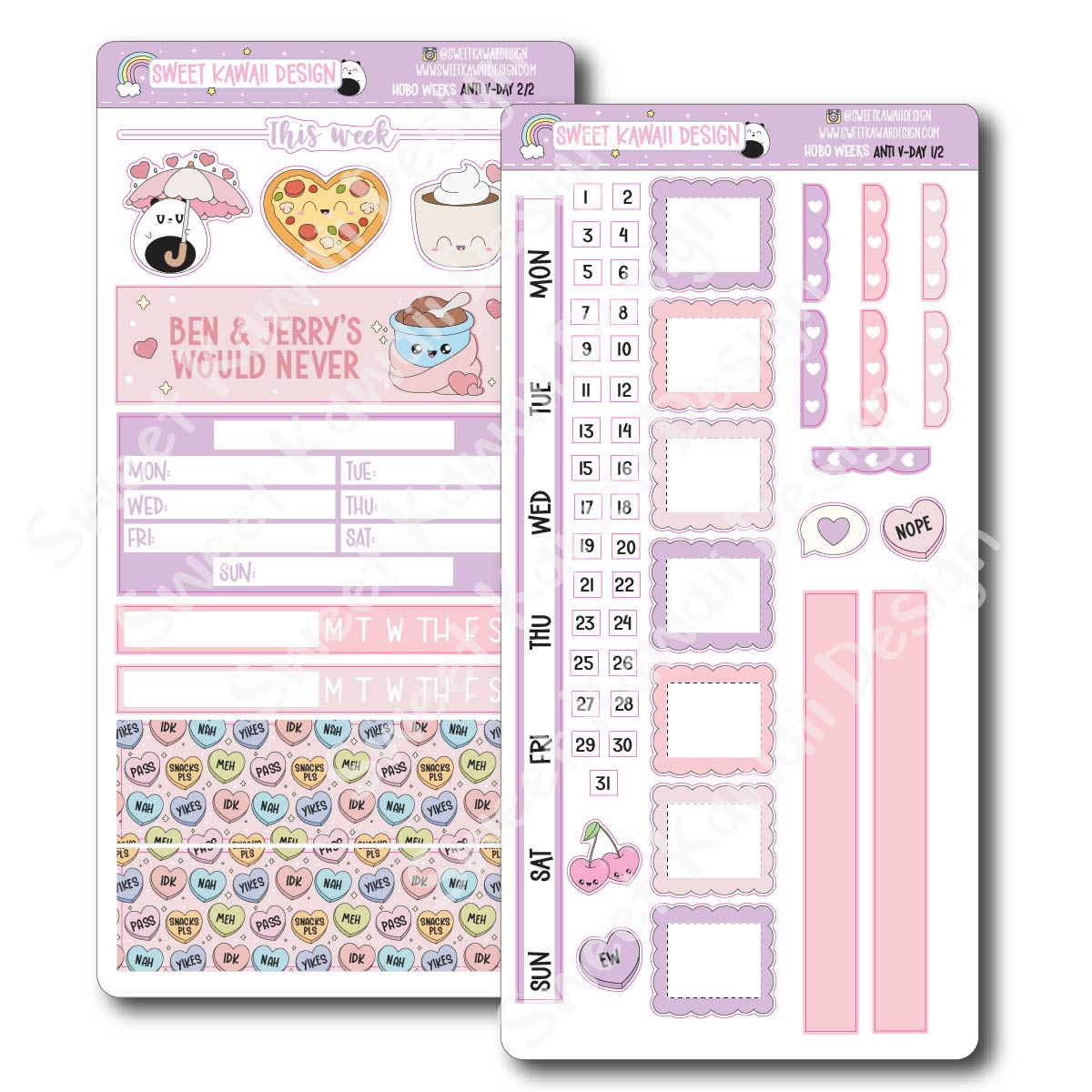 We have 5 size kits to choose from - each featuring the same stickers with the exception of the Hobo Weeks kit. Please see pics for the weeks kit.