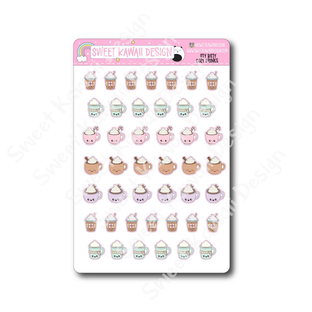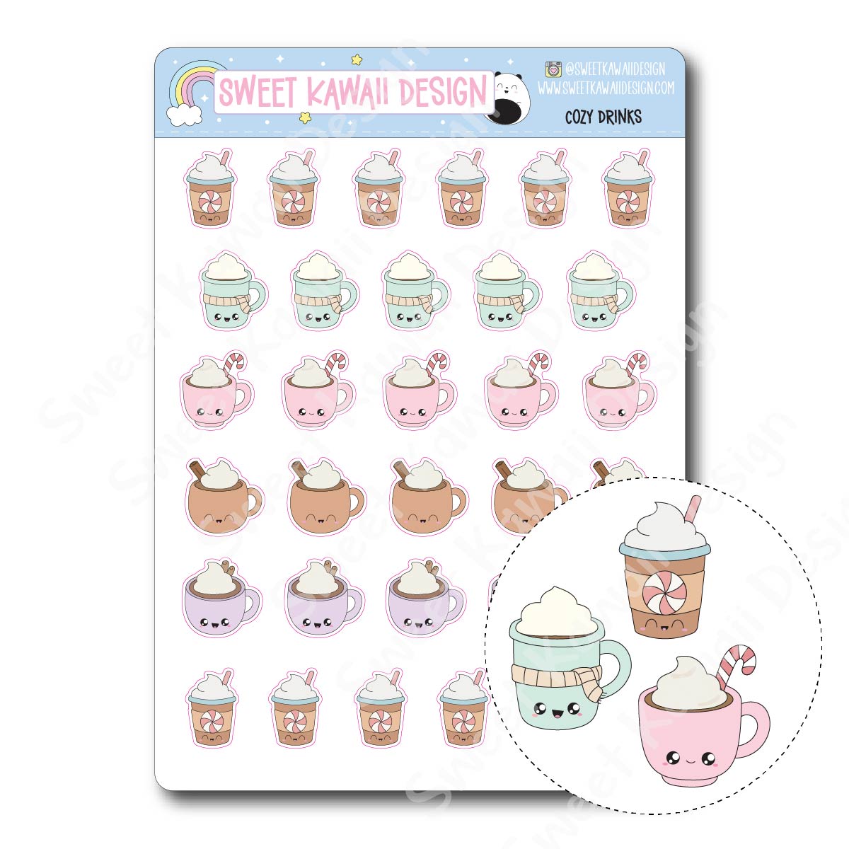 Sip your way into comfort with this adorable collection of warm and cozy drinks! ☕💖 From steaming cocoa and festive lattes to cute mugs topped with whipped cream and hearts, these stickers add the perfect touch of warmth to your planner spreads all winter long. ❄️✨