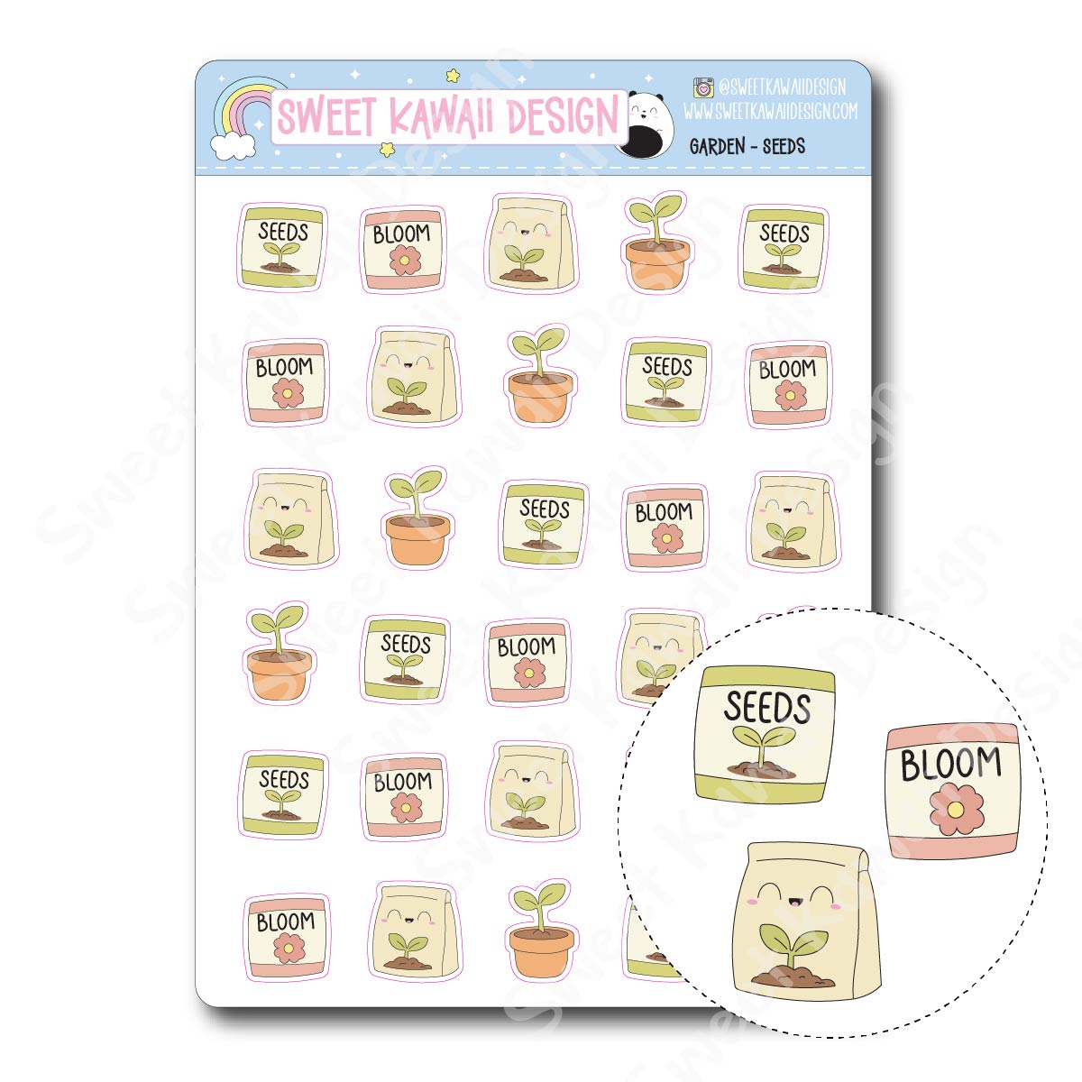 Kawaii Torn / Wiggly Corner Stickers - Gardening