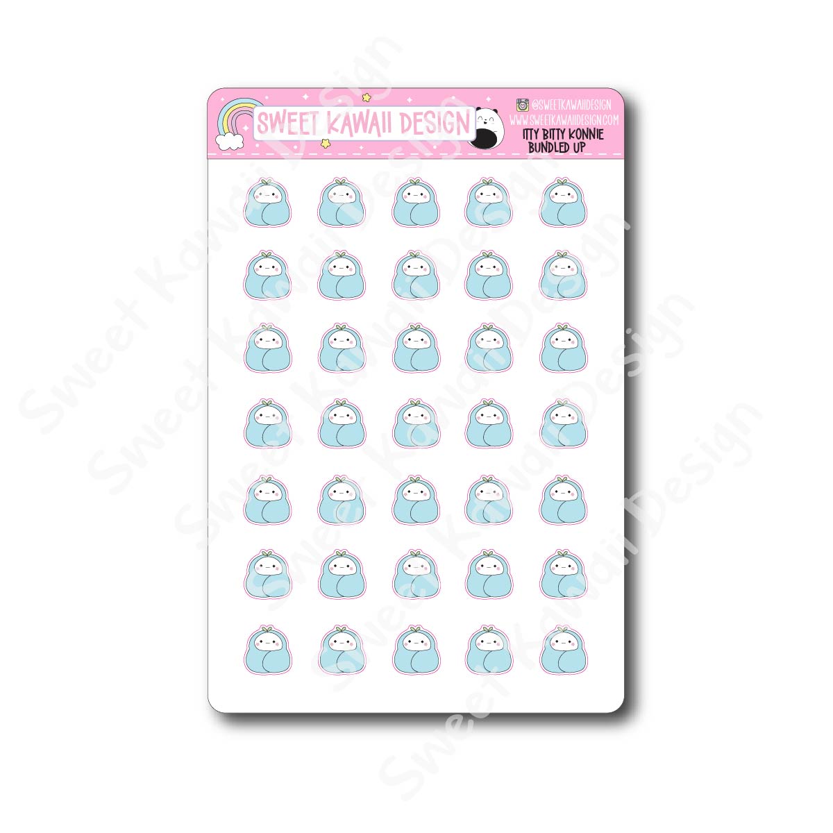 Konnie is bundled up and not thrilled about it. Perfect for marking cold days, bad moods, or times when you’re showing up but not loving it.