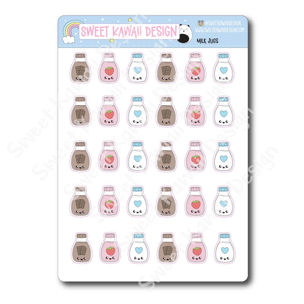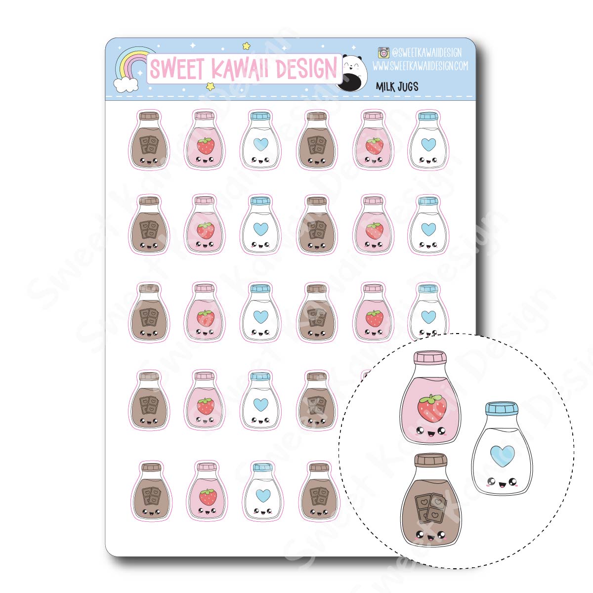 A cute sheet featuring milk jugs in chocolate, blueberry, and strawberry, perfect for adding a playful pop to your spreads.