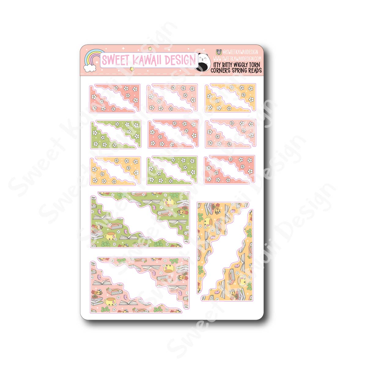 Kawaii Torn / Wiggly Corner Stickers - Spring Reads