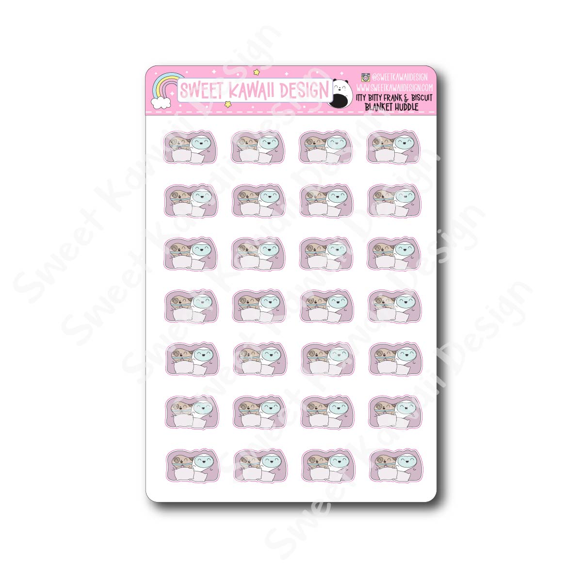 Frank and Biscuit are bundled up and staying extra cozy! This sticker sheet features the two besties huddled under a blanket, perfect for marking slow days, rest moments, and all things cozy in your planner.