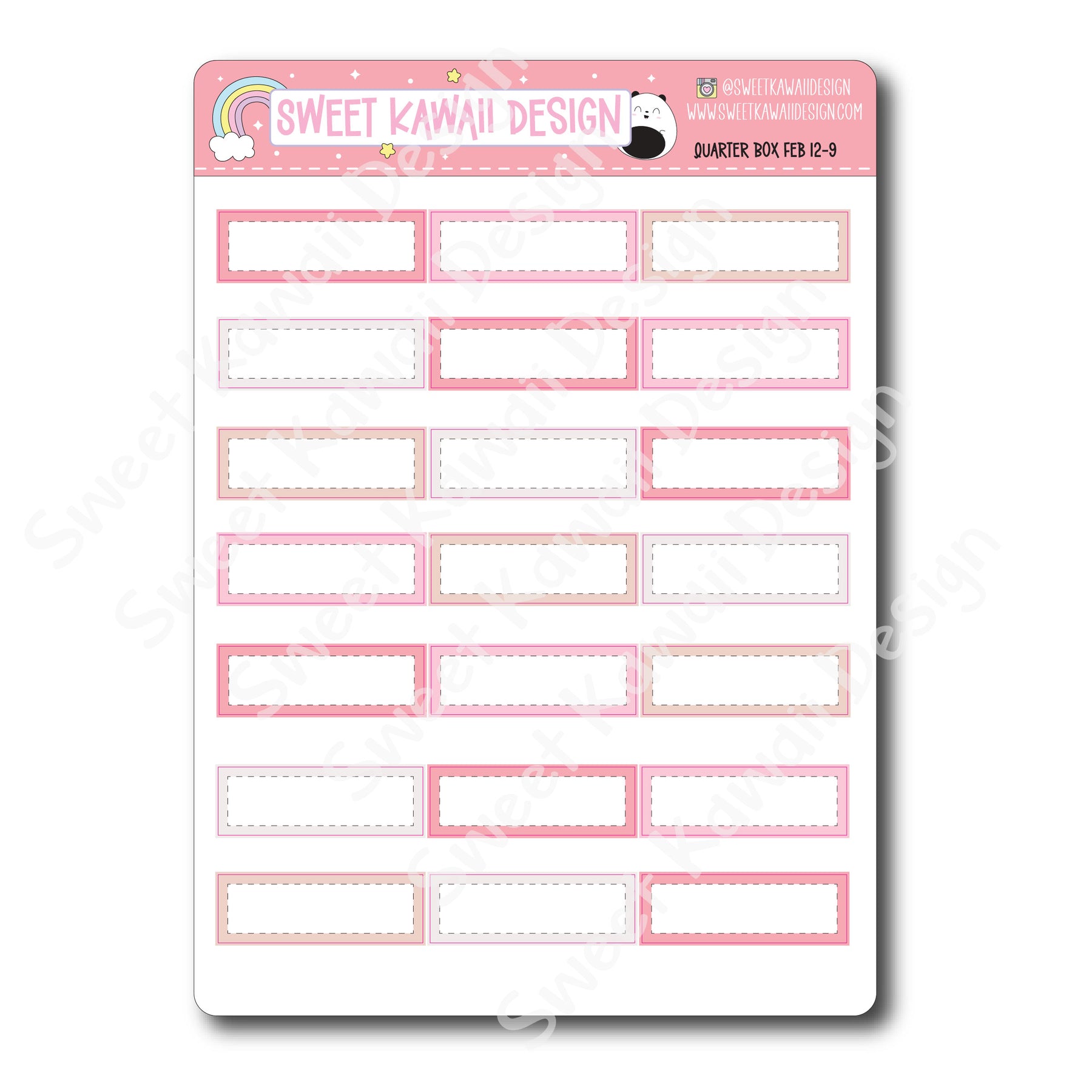 These stickers are modeled after our vertical kits. Full boxes stand at 1.9" tall. Quarter, Half and Full boxes are 1.5" wide.