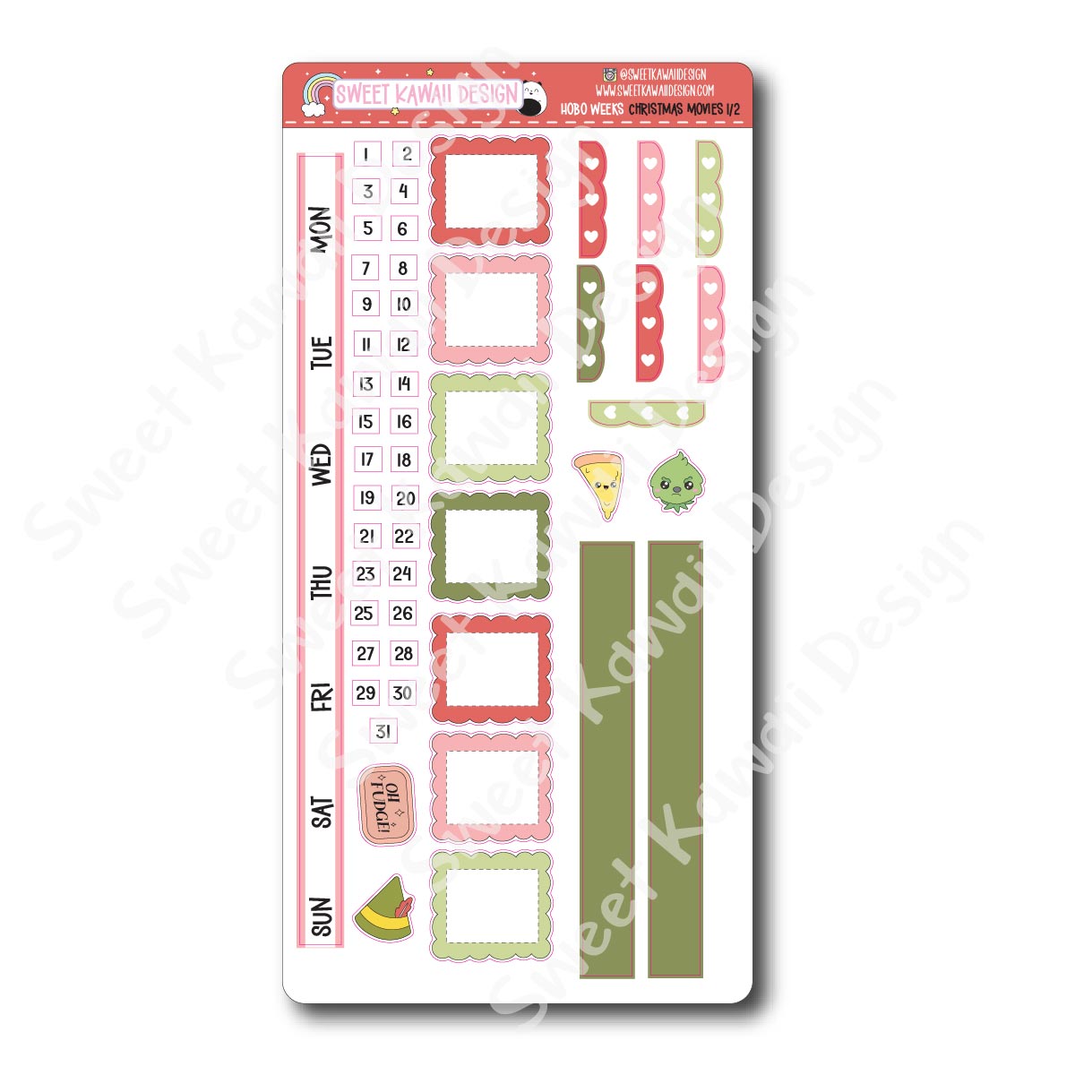 We have 5 size kits to choose from - each featuring the same stickers with the exception of the Hobo Weeks kit. Please see pics for the weeks kit.