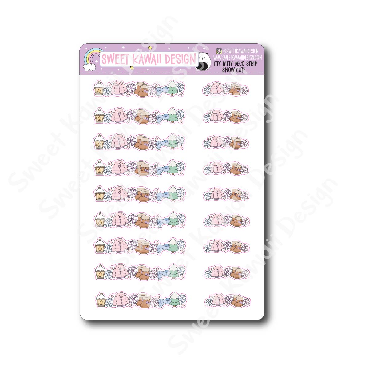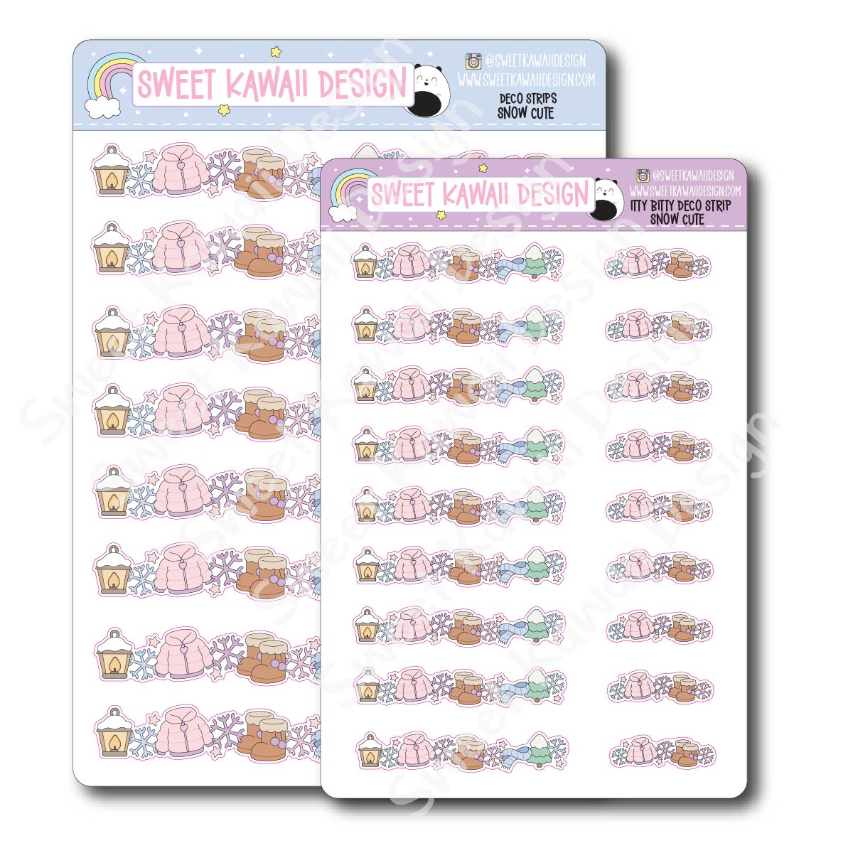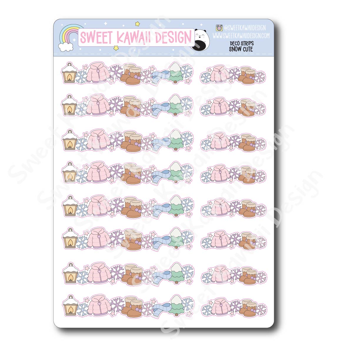 Kawaii Deco Strip Stickers (washi strip/border) - Snow Cute