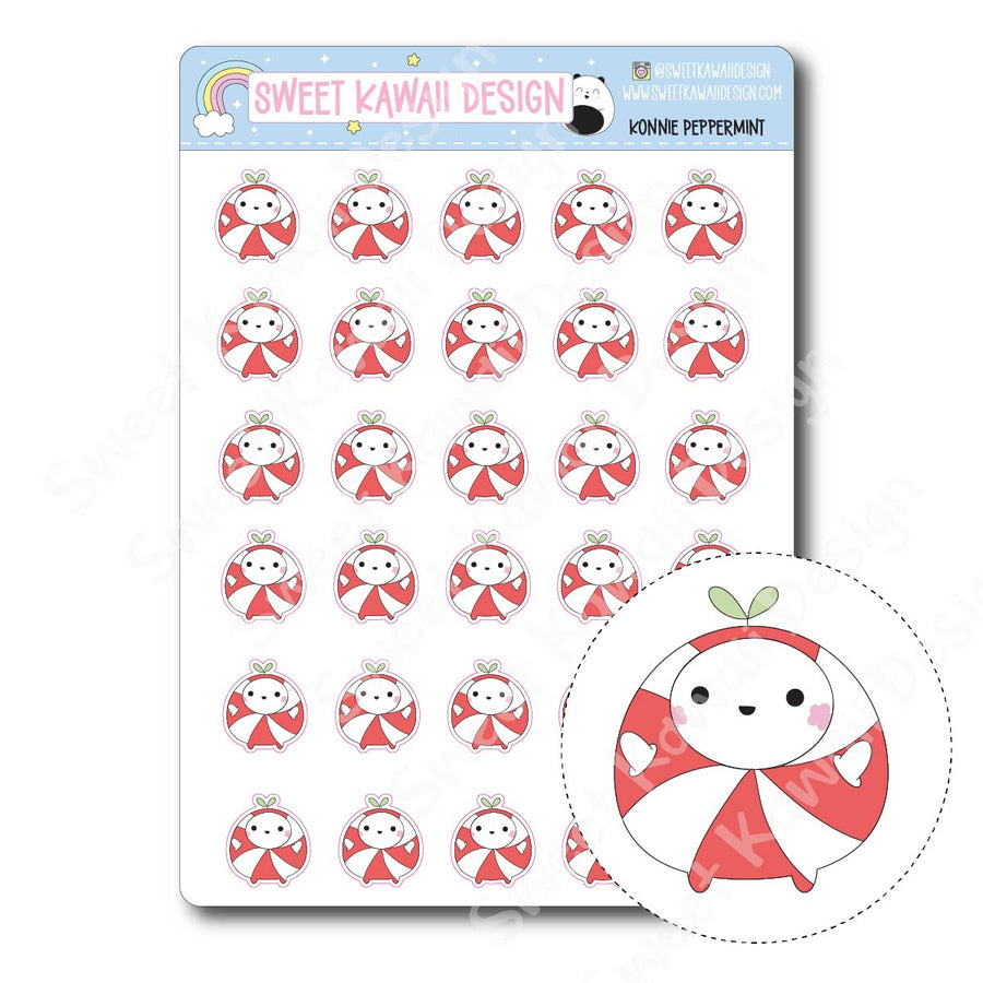 Konnie is all dressed up like the sweetest peppermint around! Wrapped in festive red and white stripes with plenty of kawaii charm, this sheet is perfect for adding a pop of holiday cheer to your planner or journaling pages. A must-have for fans of the Peppermint Dreams collection!
