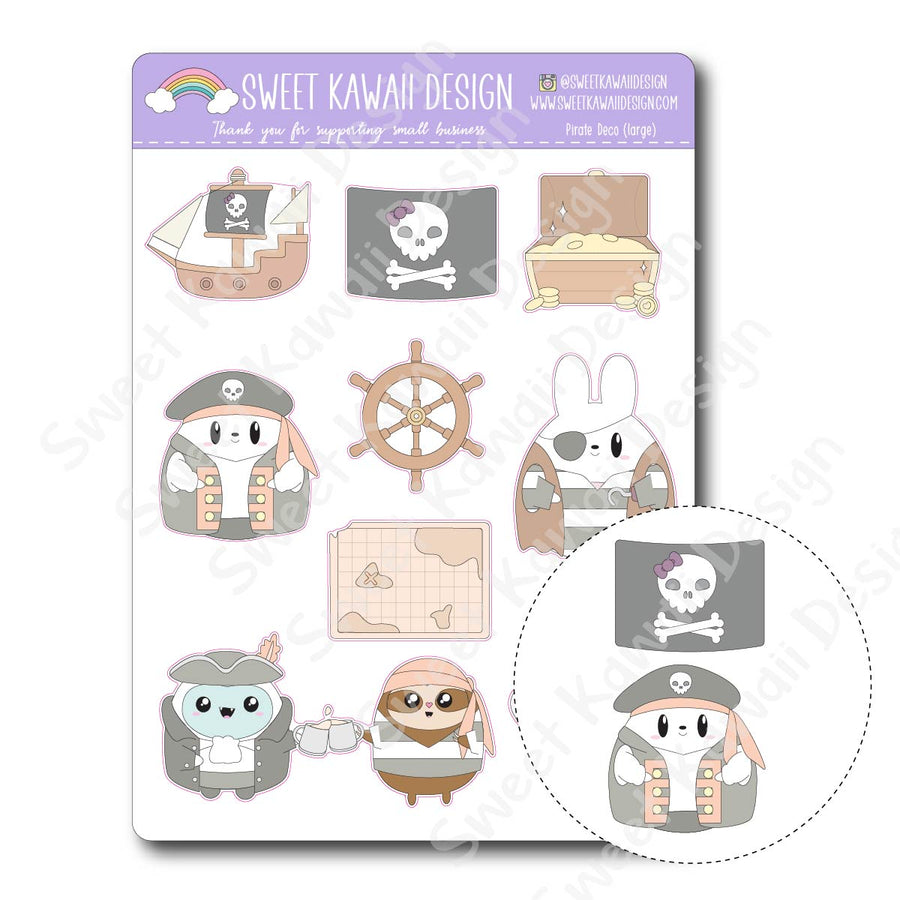 Kawaii Pirate Deco (Large) Stickers