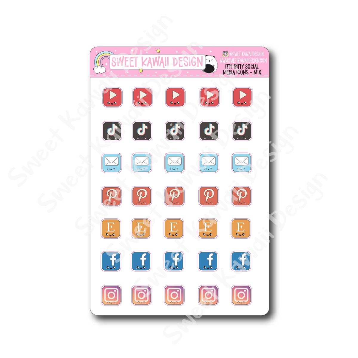 Kawaii Social Media Stickers - OPTIONS AVAILABLE