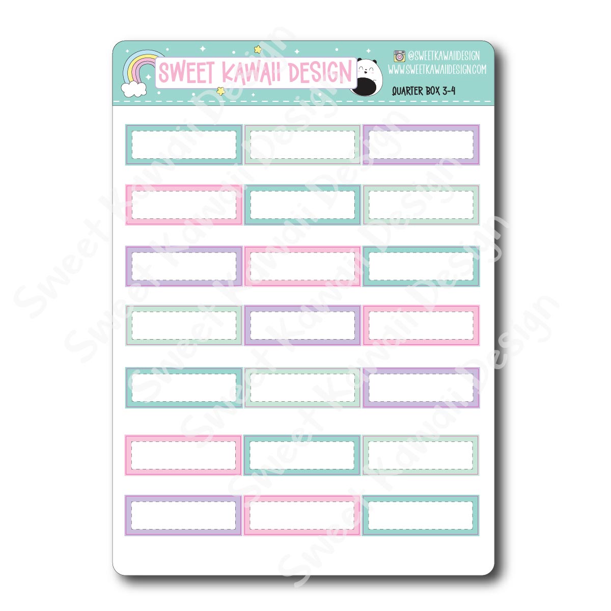 These stickers are modeled after our vertical kits. Full boxes stand at 1.9" tall. Quarter, Half and Full boxes are 1.5" wide.