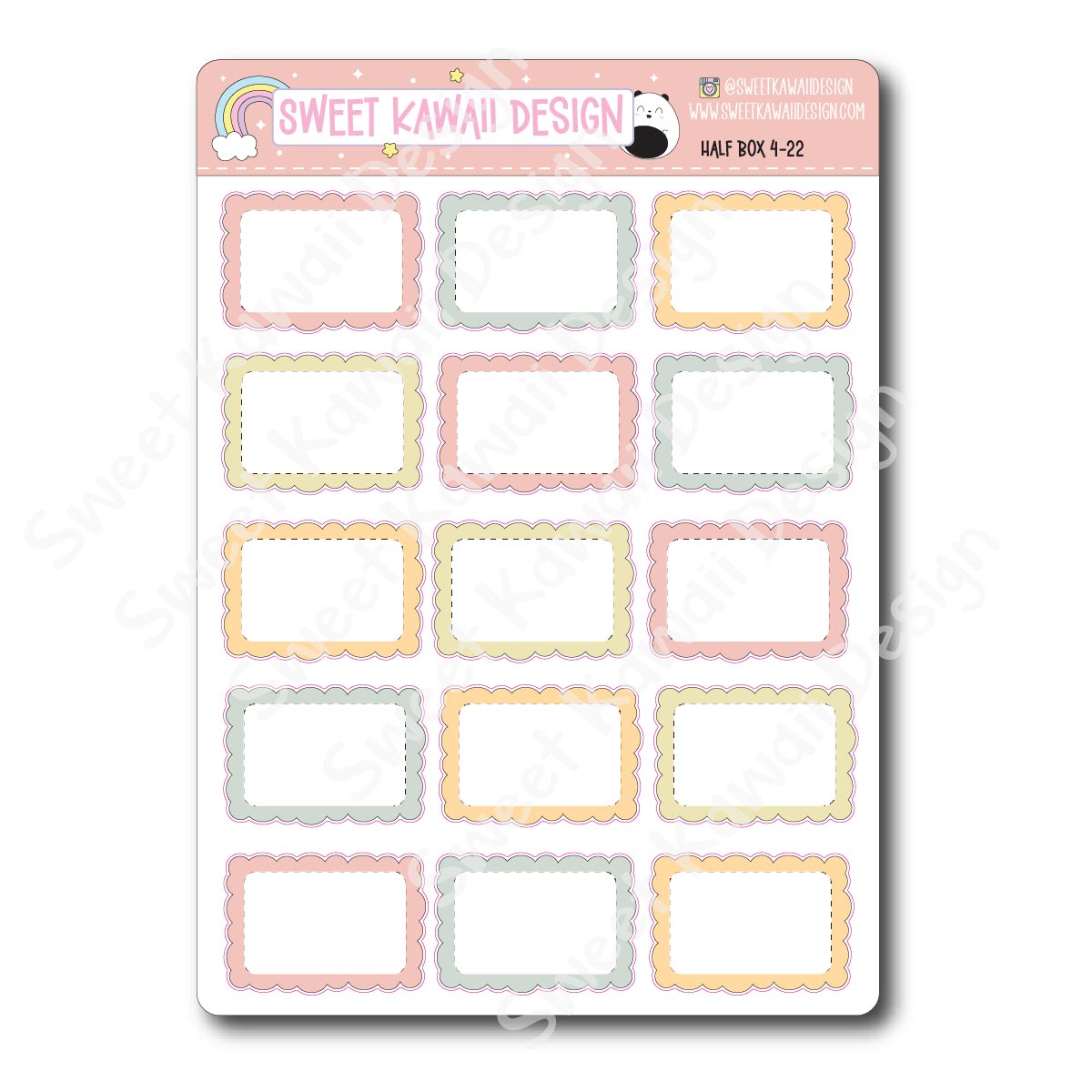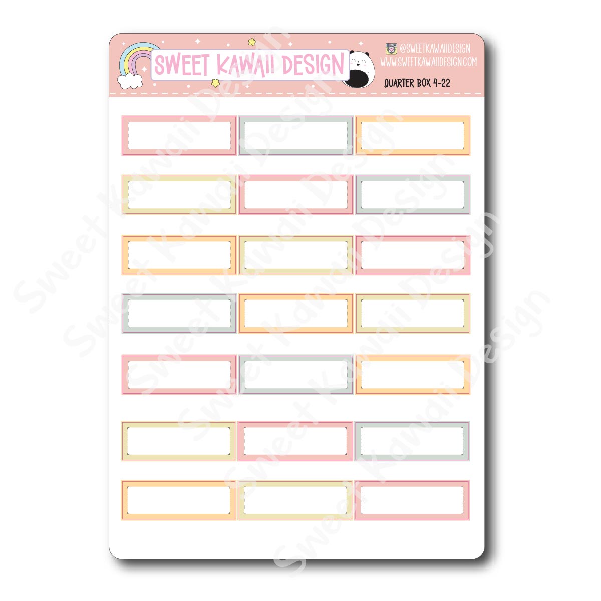 These stickers are modeled after our vertical kits. Full boxes stand at 1.9" tall. Quarter, Half and Full boxes are 1.5" wide.