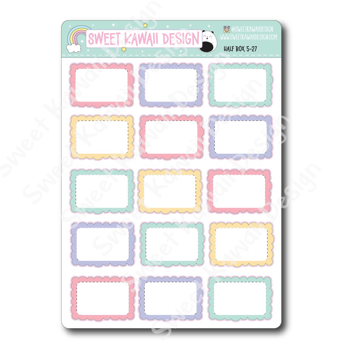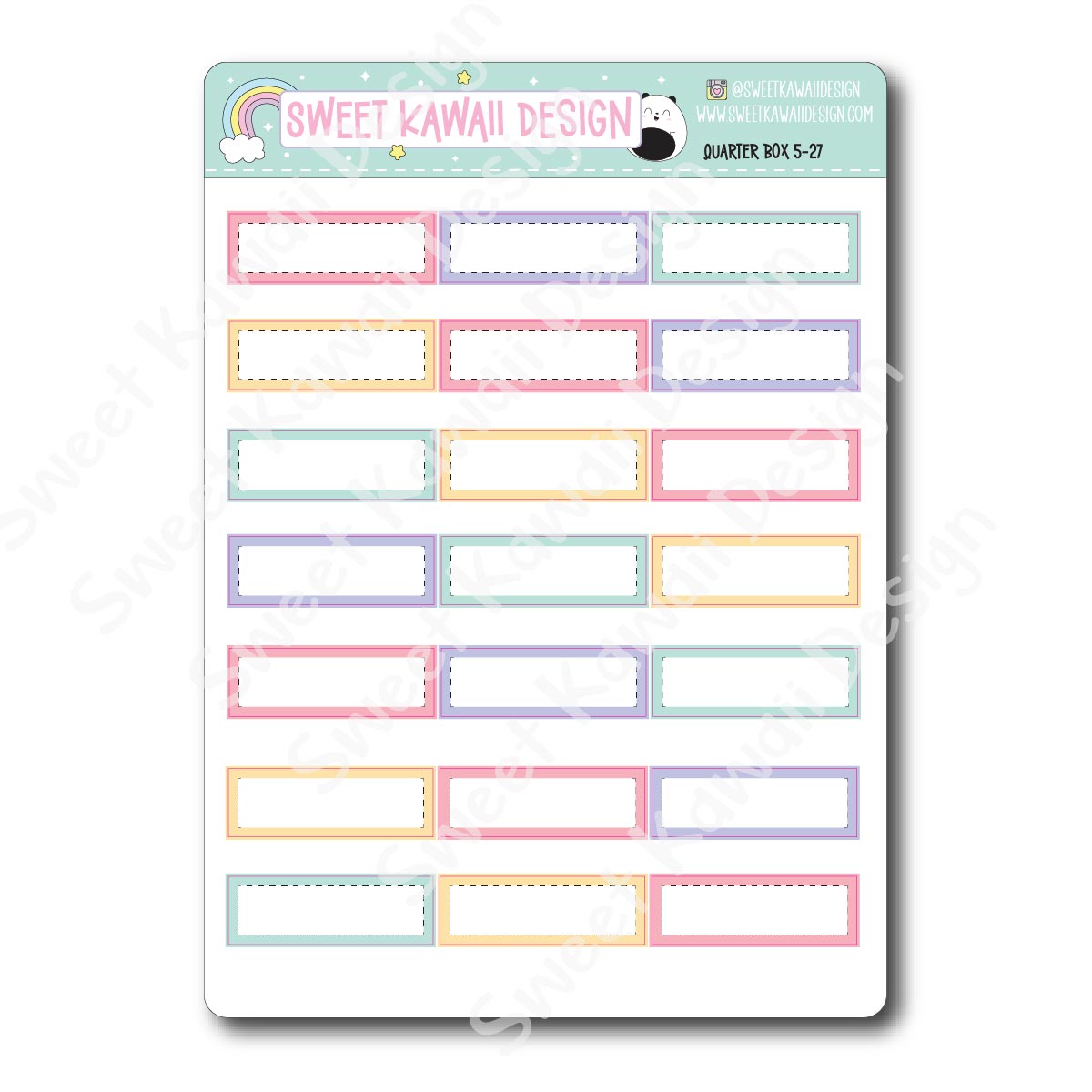These stickers are modeled after our vertical kits. Full boxes stand at 1.9" tall. Quarter, Half and Full boxes are 1.5" wide.