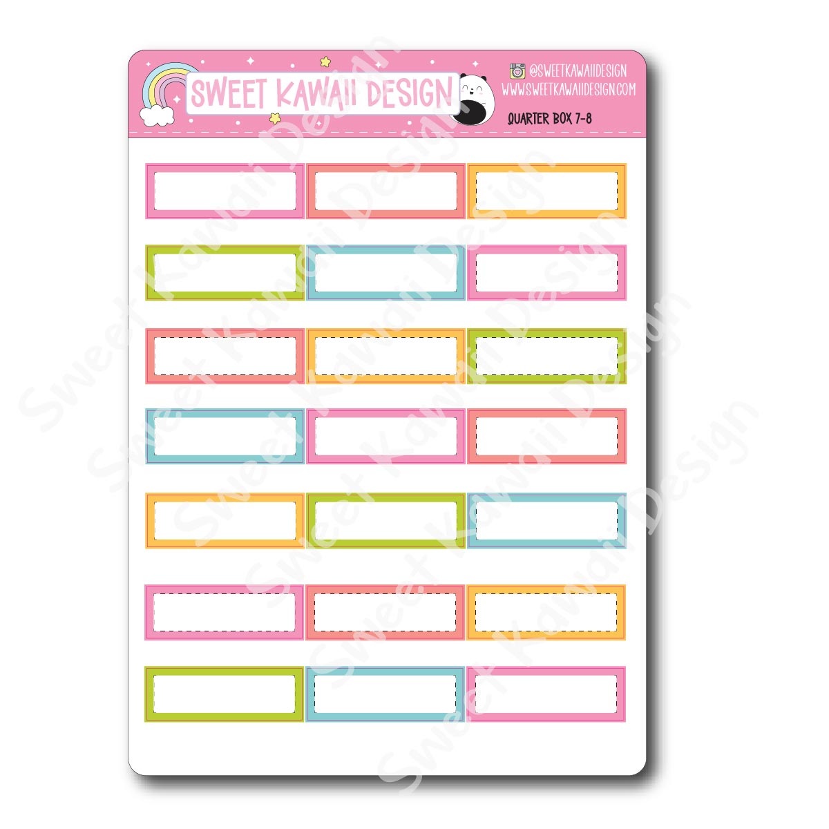 These stickers are modeled after our vertical kits. Full boxes stand at 1.9" tall. Quarter, Half and Full boxes are 1.5" wide.